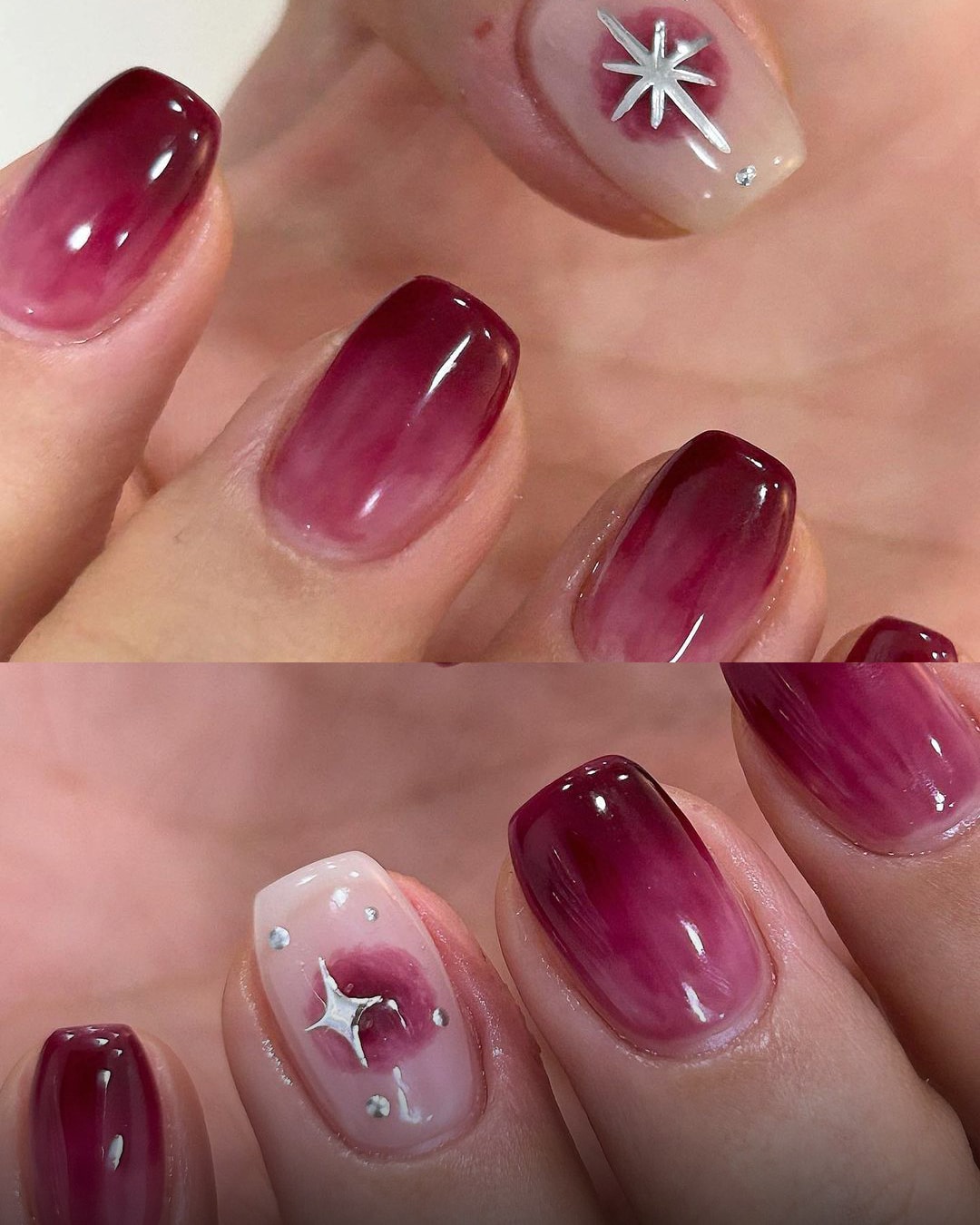 자석 젤 위에 자줏빛 치크를 올린 디자인부터 모브빛 컬러에 플럼 한 방울, 시크한 별 포인트로 마무리한 디자인까지. 차가움과 따뜻함이 공존하는 플럼 컬러 네일로 가을을 만끽해 봐요!