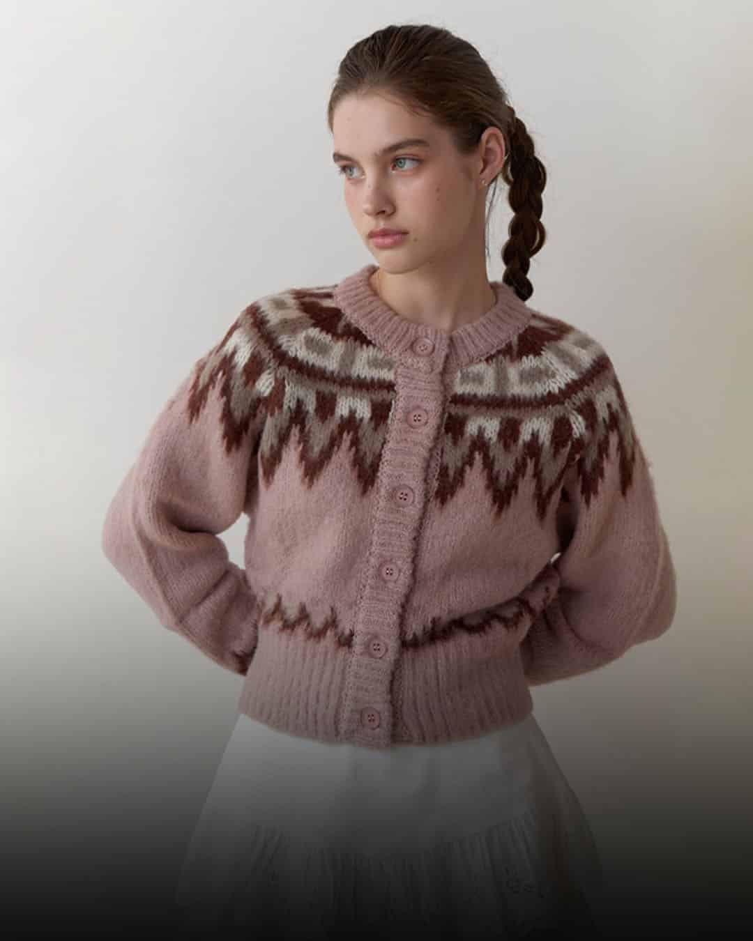 ▫️ @re__l_official Lodge nordic knit cardigan_Pink KRW 155,000
