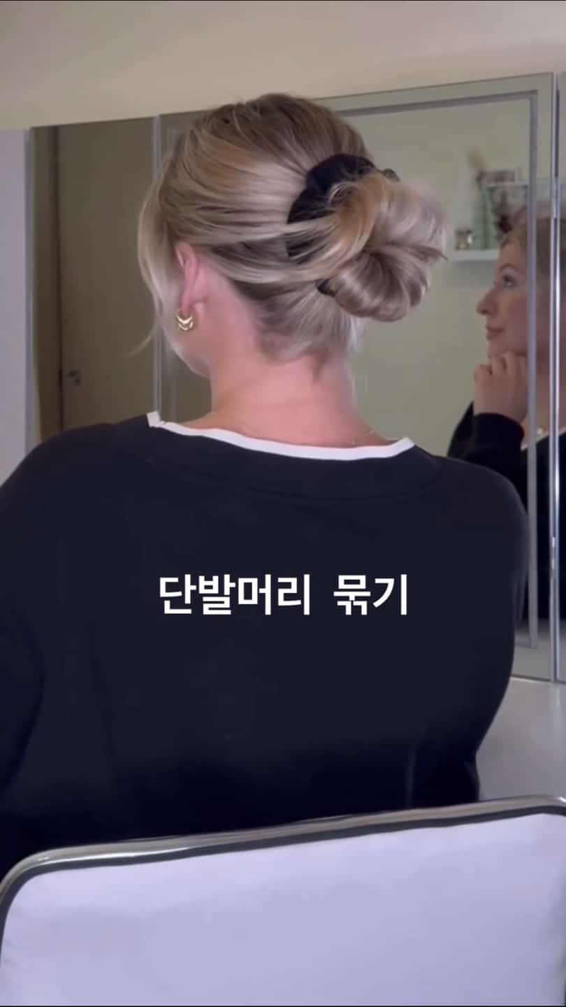 이때 시도하면 좋을 단발 똥머리 스타일링을 소개합니다! 이 스타일링의 핵심은 커다란 스크런치를 활용해 머리끈을 숨겨주는 것🪄