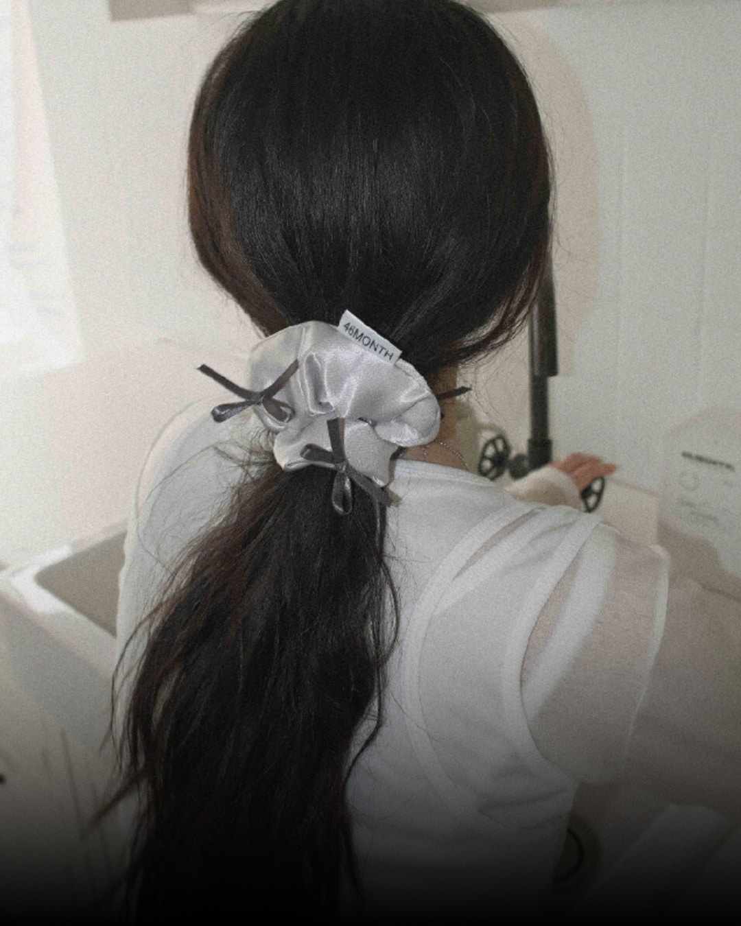 ▫️ @46month.kr Ribbon Scrunchie_satin silver KRW 19,000