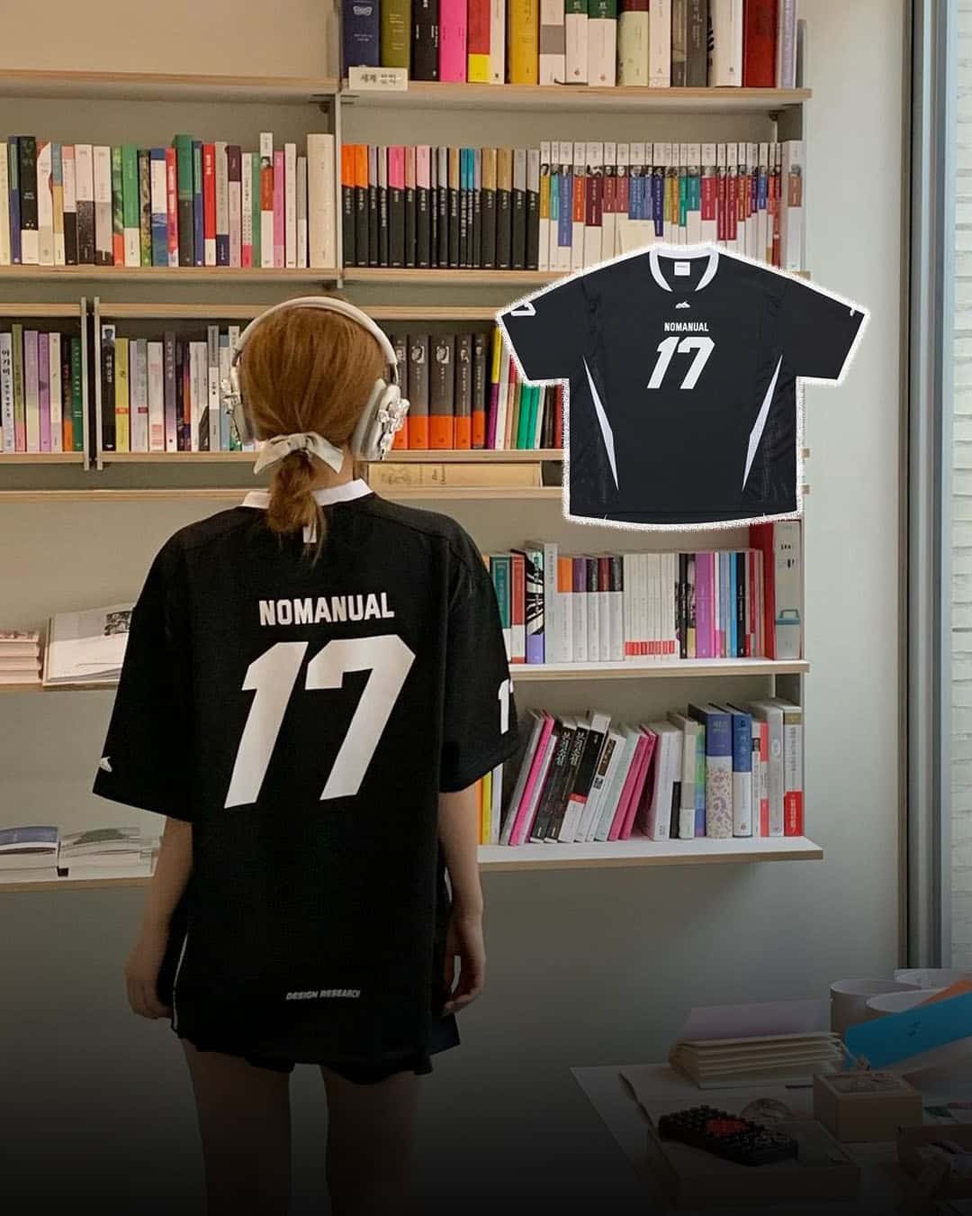 ▫️ @hi_sseulgi @nomanual.designs 슬기 NOMANUAL 17 MESH BLOCK FOOTBALL JERSEY_BLACK ₩49,000