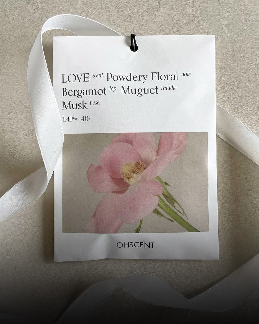 감성적인 패키지 안에 향기 퍼퓸 샤쉐가 들어간 제품. 오센트의 베스트 향기들로 구성된 6가지 향이 2-3주간 지속됩니다.