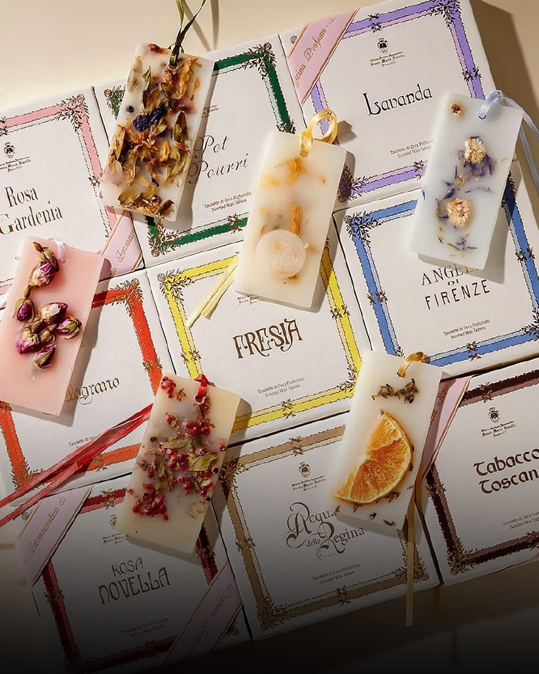 몰딩부터 원료 배치, 조각, 포장까지 모두 수작업으로 제작되는 왁스 타블렛. 1221 에디션의 8가지 아이코닉 향기와 새로운 라반다 향까지 총 9가지 향으로 구성되었습니다.