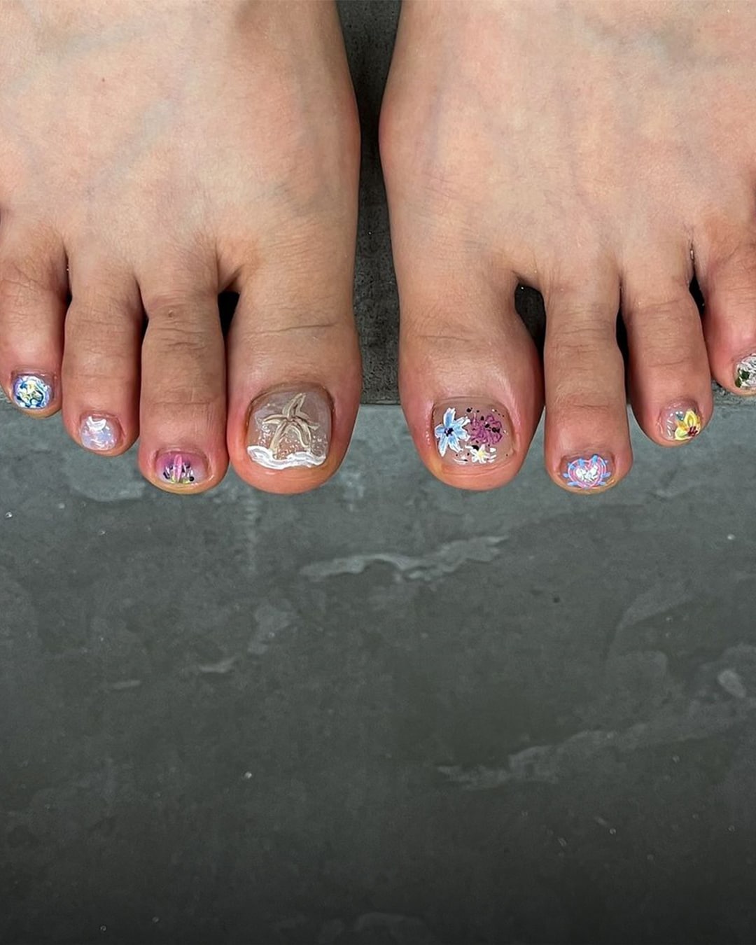인스타그램에서 요즘 핫한 페디큐어를 모아봤어요. 유니크한 페디큐어와 함께 맨발을 두 배로 즐겨봐요🌊🩵