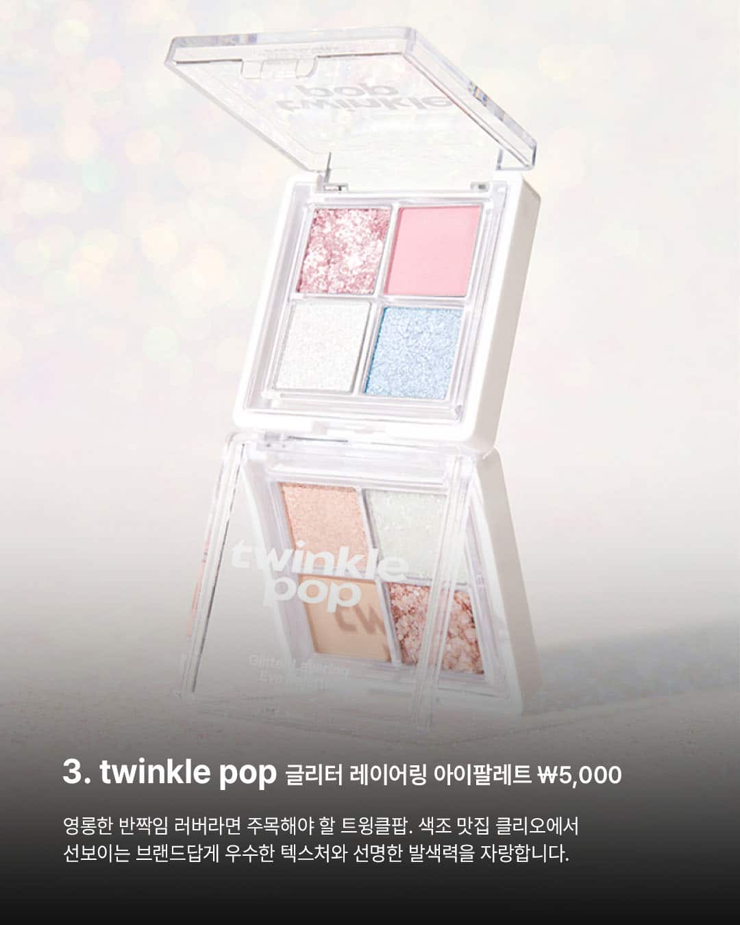 3️⃣ @twinklepop_official 글리터 레이어링 아이팔레트 ₩5,000