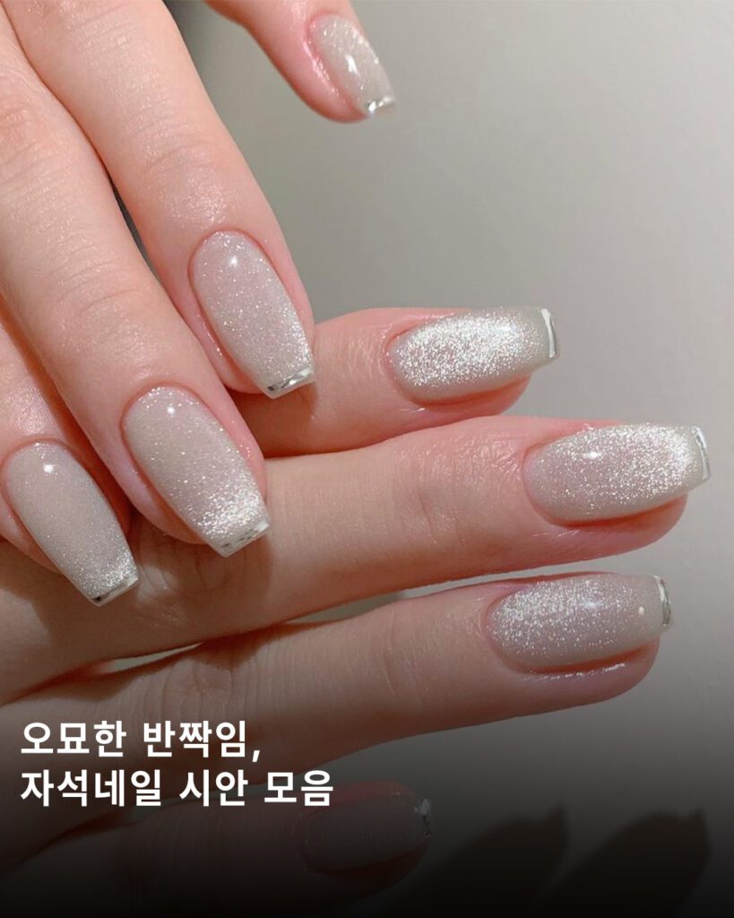오묘하게 반짝이는 글리터가 매력적인 자석네일 시안을 공유합니다🪄