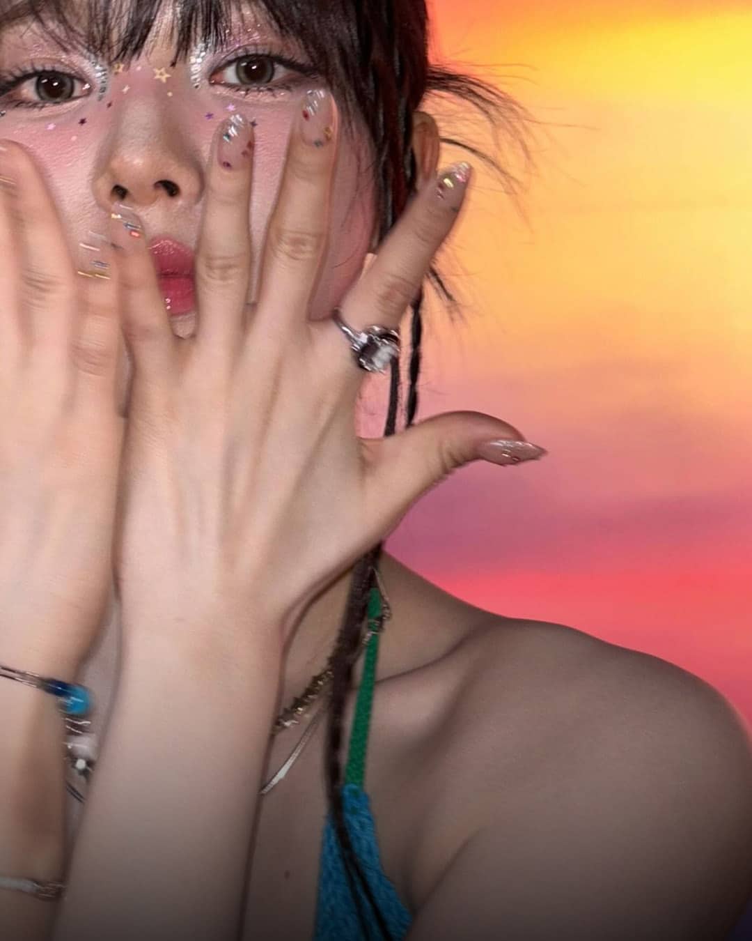 – 네일용 파츠를 콧등, 볼, 눈꼬리 등 원하는 곳에 붙여주기