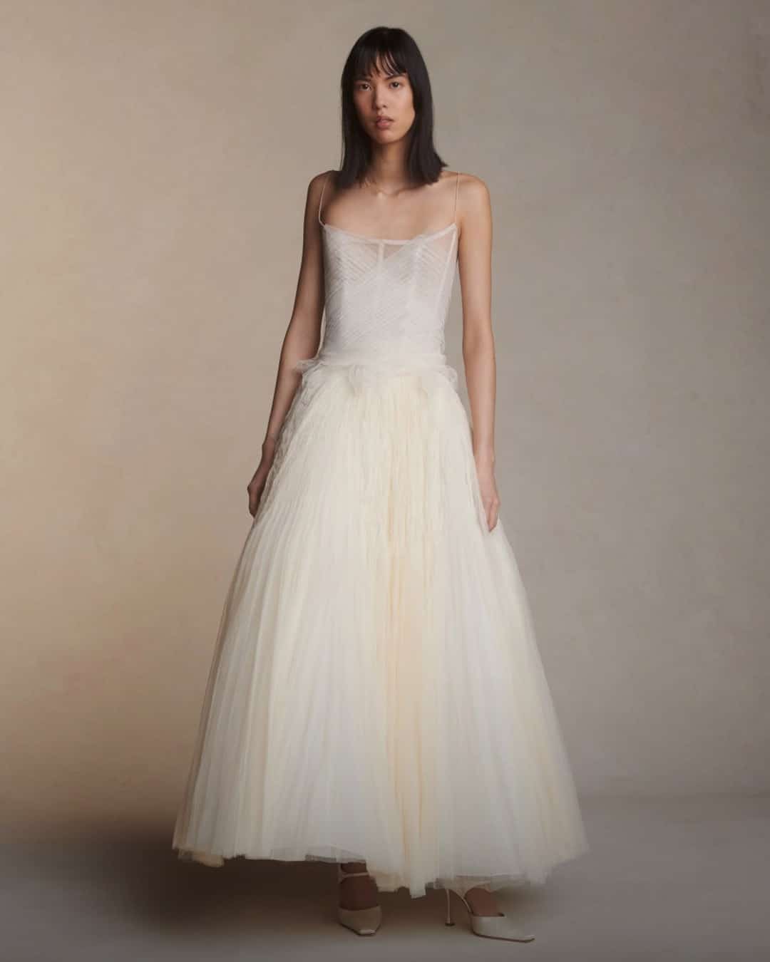 화이트 뷔스티에 탑과 롱스커트 코디, 슬림한 바디라인이 돋보이는 실루엣으로 여성스럽고 우아한 룩 연출