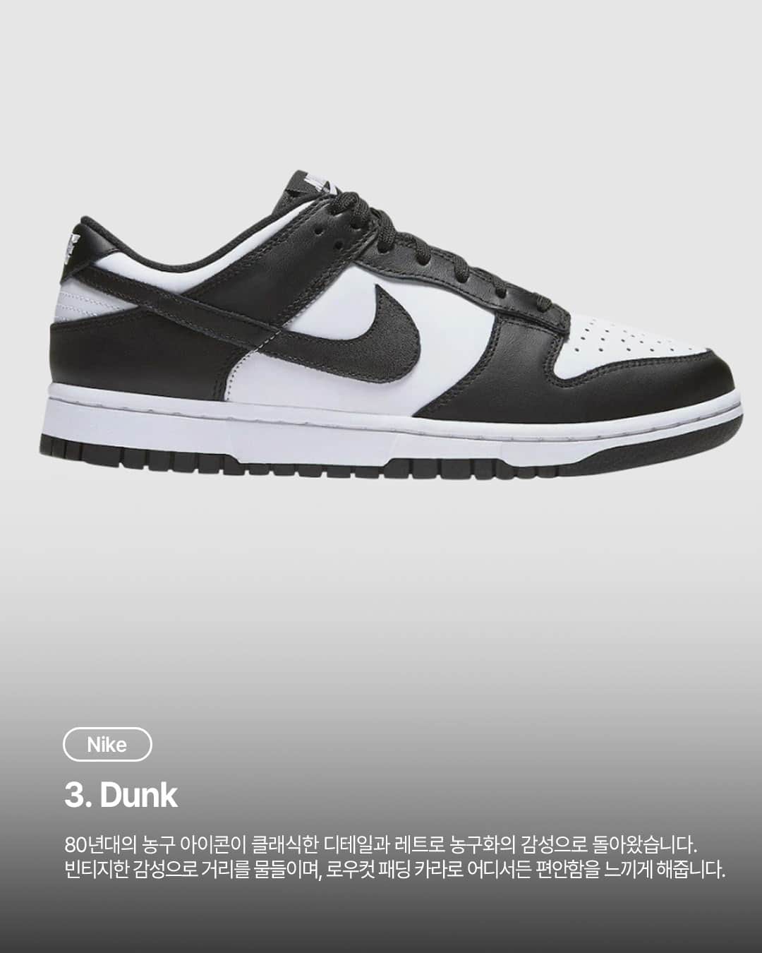[Dunk] 80년대의 농구 아이콘이 클래식한 디테일과 레트로 농구화의 감성으로 돌아왔습니다. 빈티지한 감성으로 거리를 물들이며, 로우컷 패딩 카라로 어디서든 편안함을 느끼게 해줍니다.