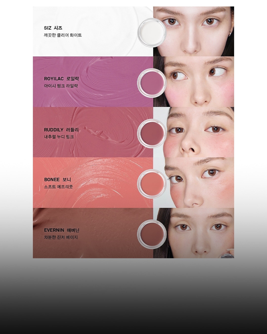 밤 타입으로 손가락 온도에 부드럽게 녹아들어 맑고 투명하게 차오르는 건강한 글로우 표현