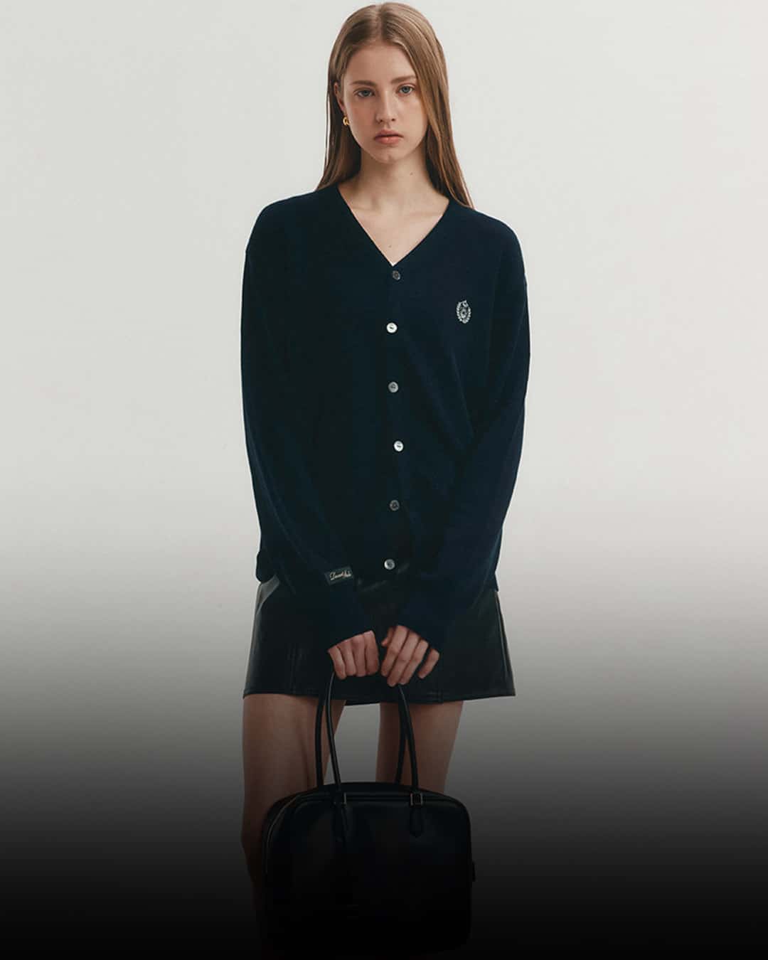 빈티지 무드가 돋보이는 세미-오버 핏 로고 가디건. 브이넥 디자인과 손등을 충분히 덮어주는 롱 슬리브 디자인으로 내추럴한 아웃핏을 연출해 줍니다.