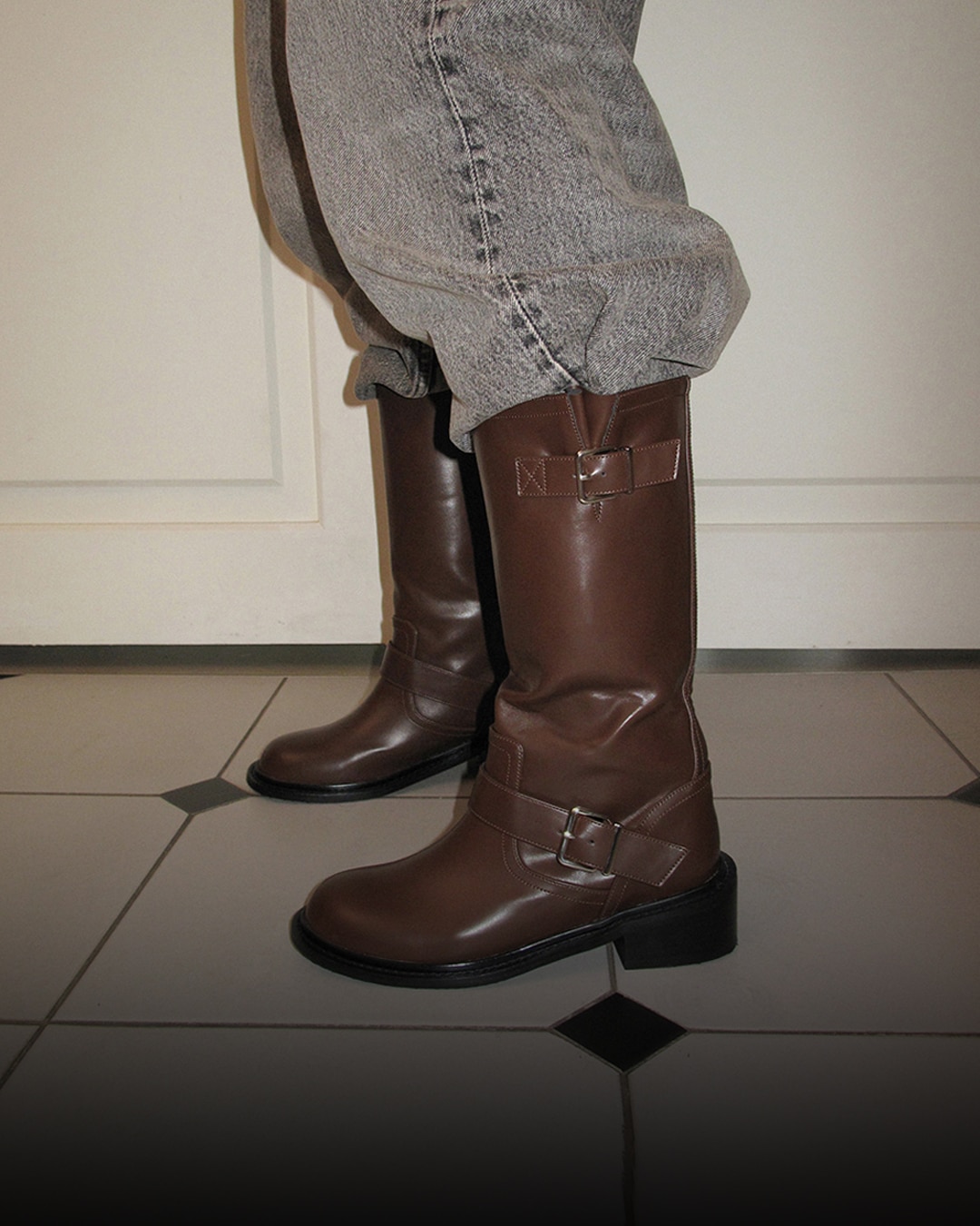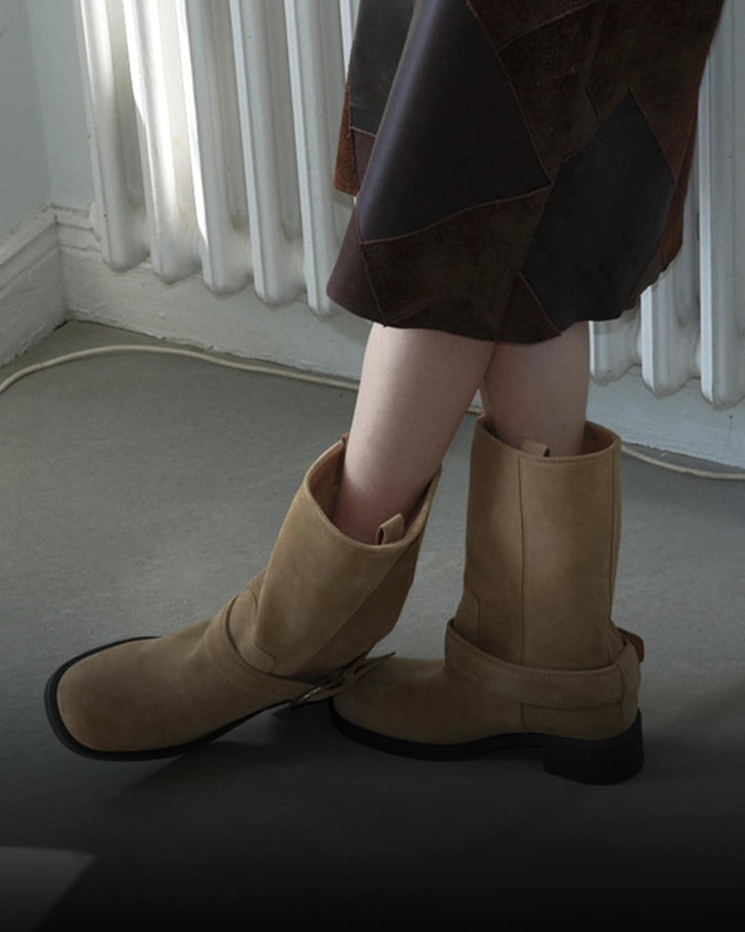 널찍한 입구와 넉넉한 핏, 버클 디테일이 무심한 멋을 살려주는 미들 부츠