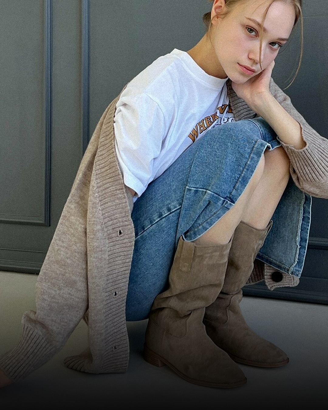 ▫️ @saltandchocolate.official 라운드 토 베이직 플랫 롱부츠 KRW 119,000