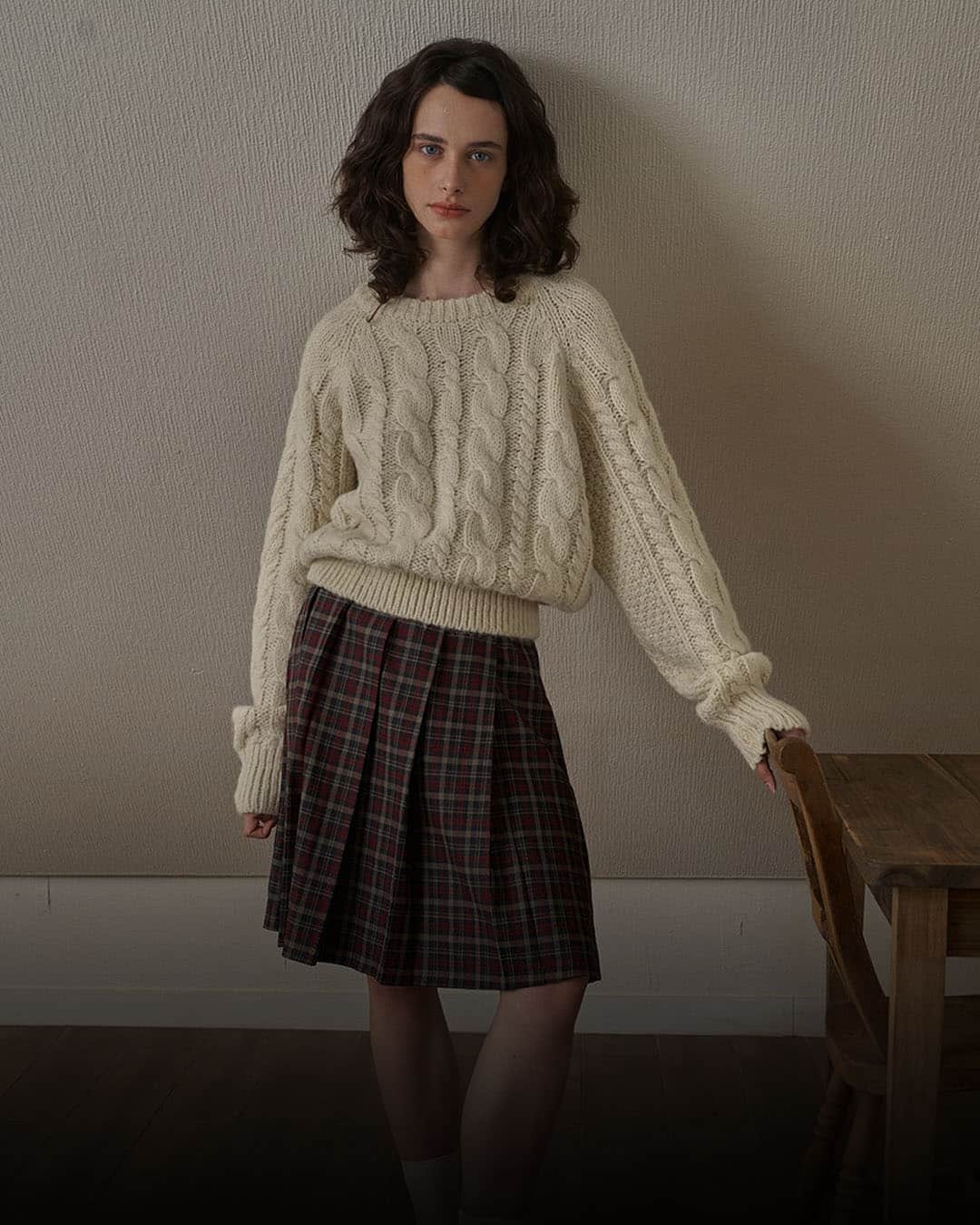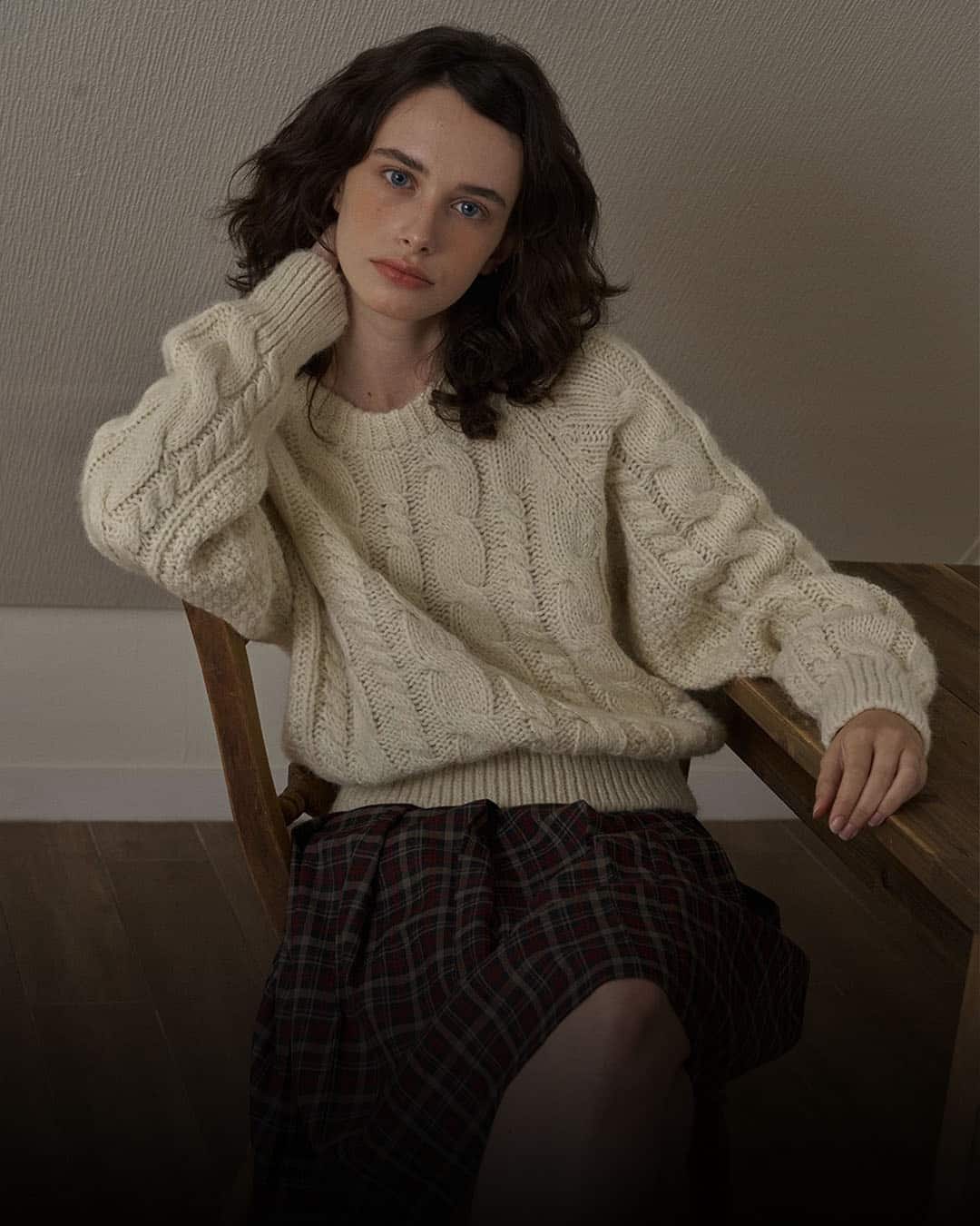 아방한 핏의 케이블 니트를 구비해 두면 여리여리 청순한 여친룩 무드를 완성할 수 있다. 조거 팬츠와 함께 포근한 원마일웨어룩으로도 활용하기 좋다.