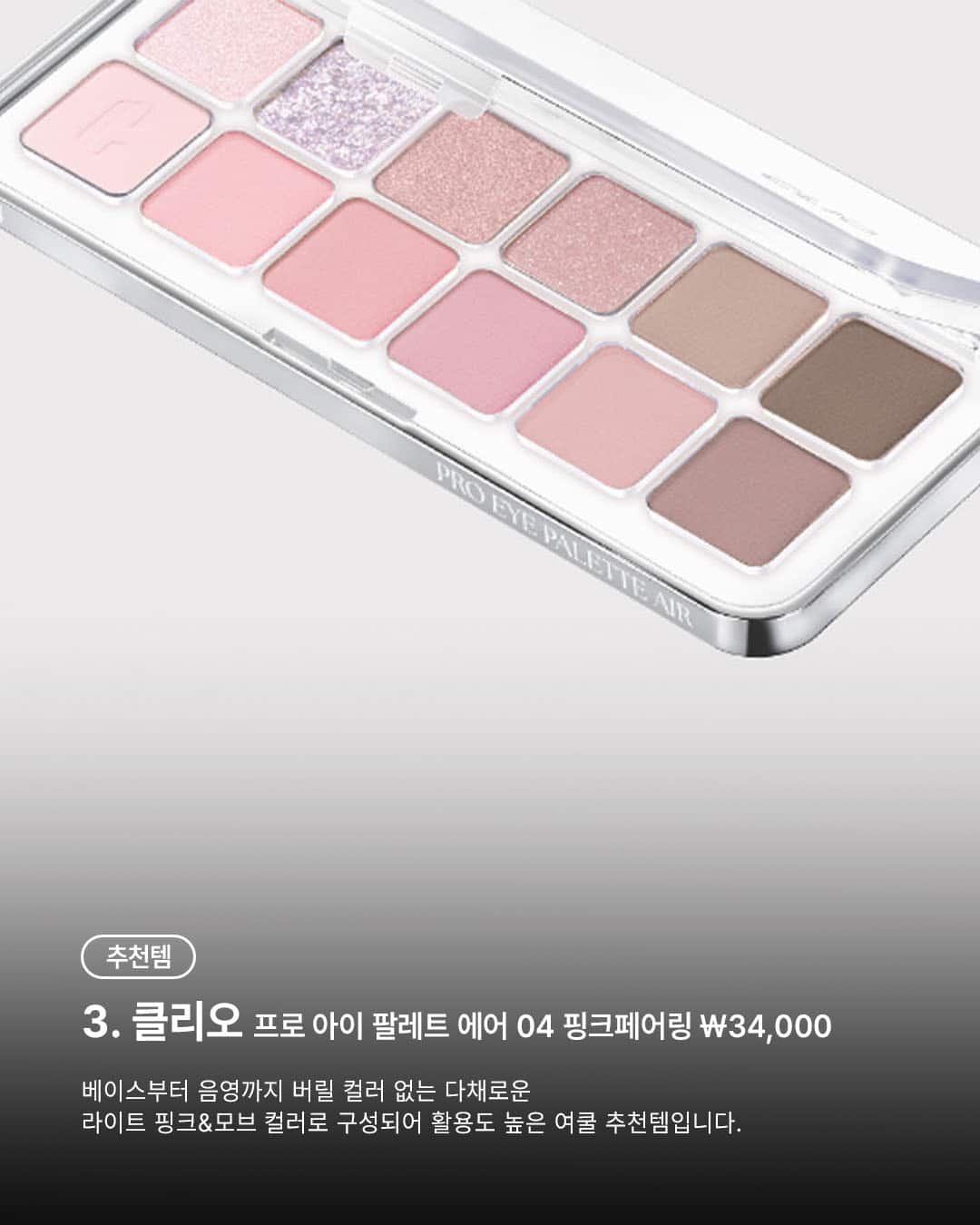 3️⃣ @cliocosmetics_official 프로 아이 팔레트 에어 04 핑크페어링 ₩34,000