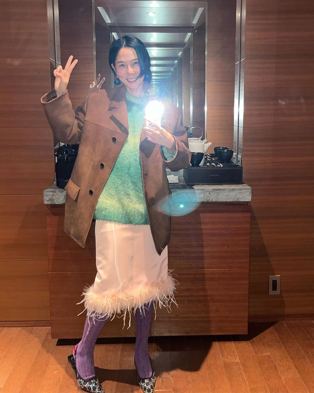 ▫️ 단색 의상에 컬러 스타킹을 매치해 포인트 주기