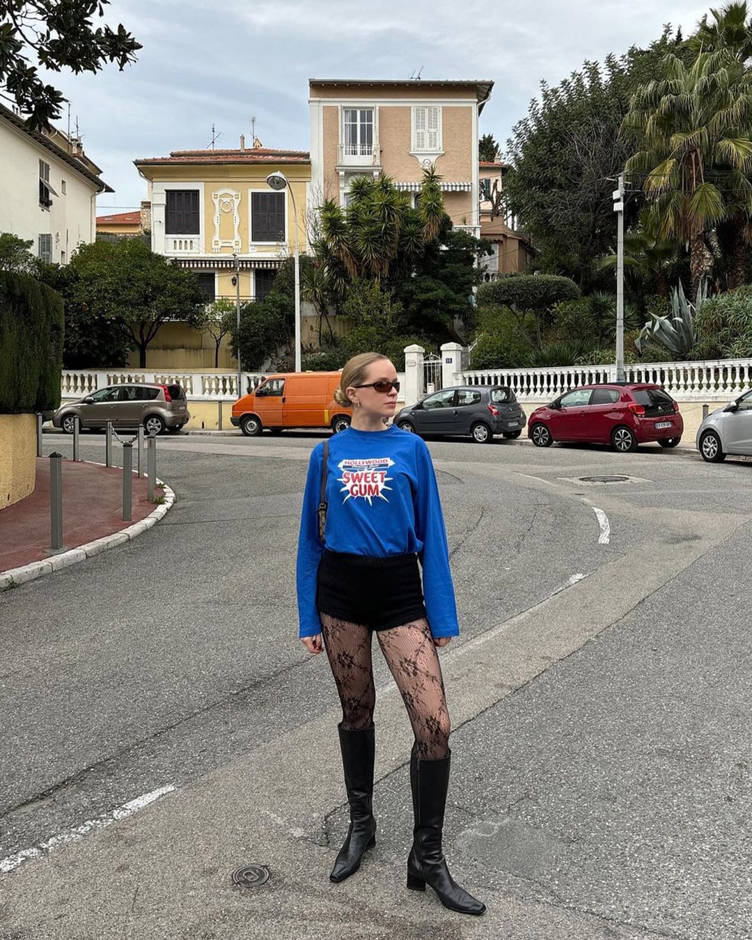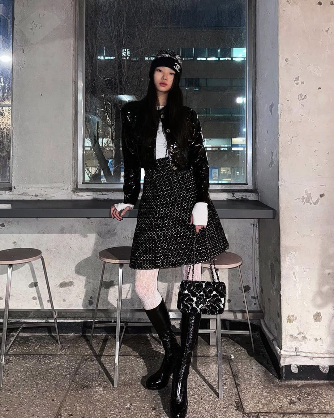 ▫️ 마이크로 쇼츠에 스타킹을 더해 2024 유행 총집합 룩 완성하기