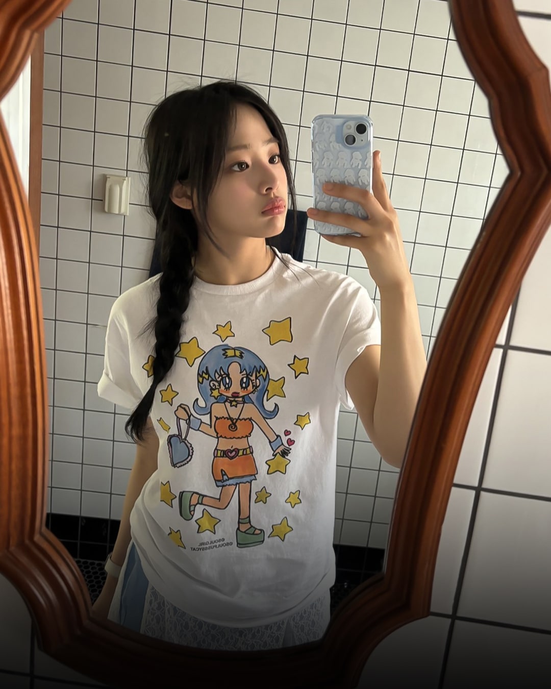 여름철 필수 아이템 반팔 티셔츠👕 진정 패션 피플이라면 매일 입는 반팔 티셔츠도 아무거나 대충 선택할 순 없는 법이죠! 여돌들이 선택한 10만 원 이하 키치한 반팔티로 옷장을 새롭게 채워봐요✔️