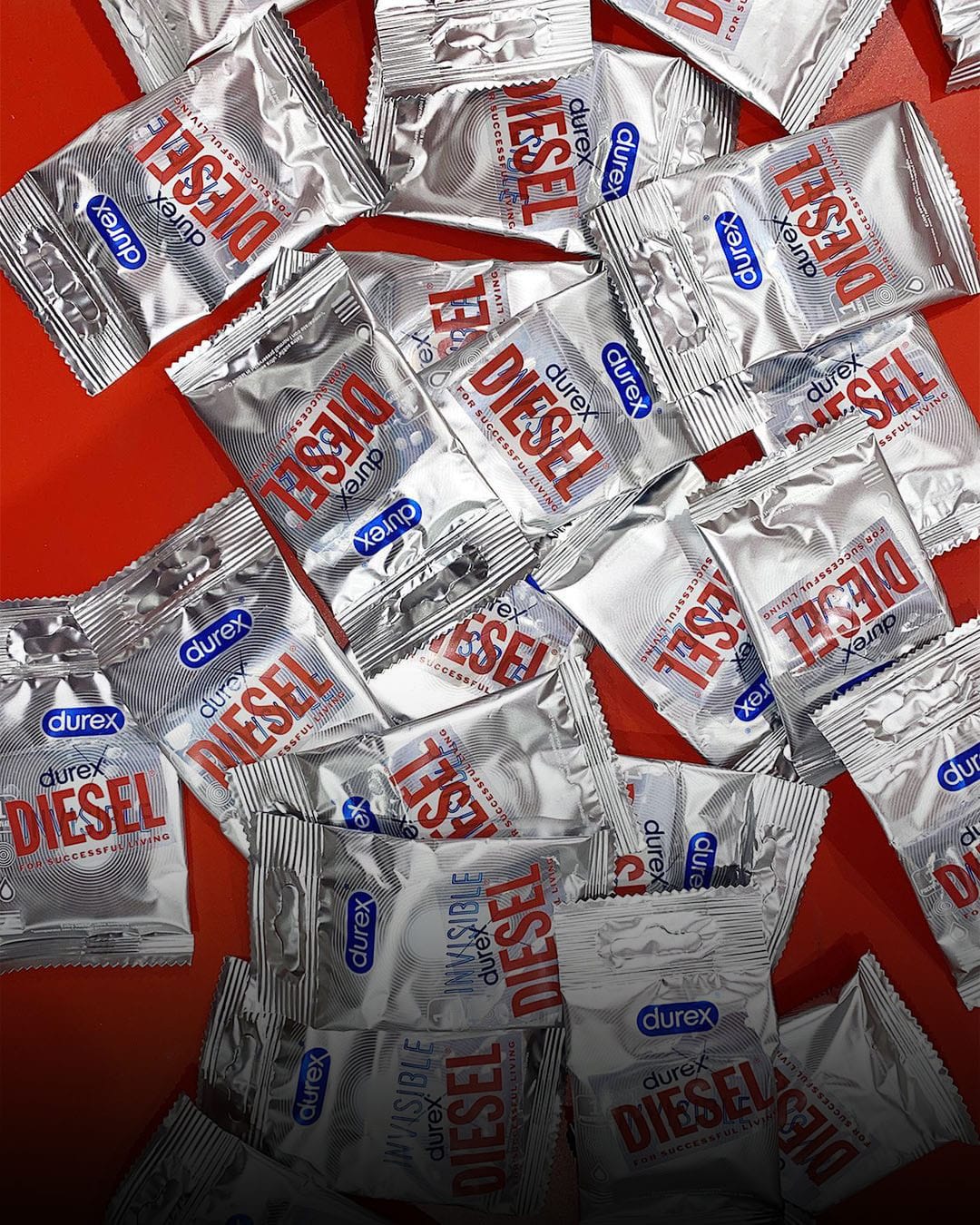 Diesel’s 2023 F/W collection, in collaboration with the condom brand ‘Durex,’ unfolded on a stage adorned with 200,000 condom boxes, with the theme ‘For Sucsexfull Life,’ promoting a healthy sexual lifestyle, leading the runway.