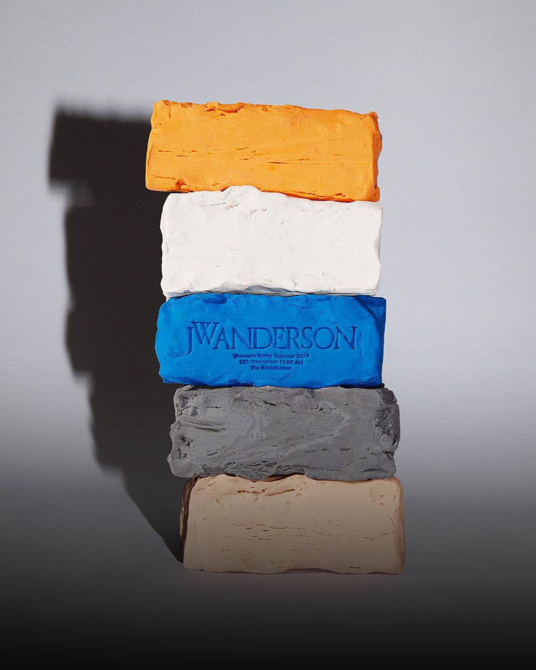 The somewhat perplexing identity of the JW Anderson invitation turned out to be none other than clay. It reflects the textured and exaggerated silhouette of the 2024 S/S show’s opening look, featuring a hoodie and shorts made from uneven and sculpted clay material.