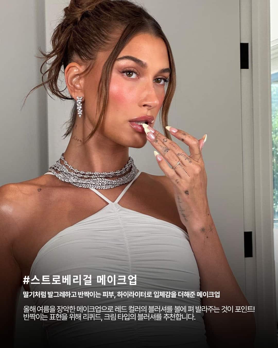 In a year filled with numerous makeup trends, let’s delve into four standout makeup keywords that dominated the beauty scene in 2023. From the Strawberry Girl makeup led by Hailey Bieber to a radiant, glittery lip makeup reminiscent of Tanghulu, let’s explore them all at once✔️