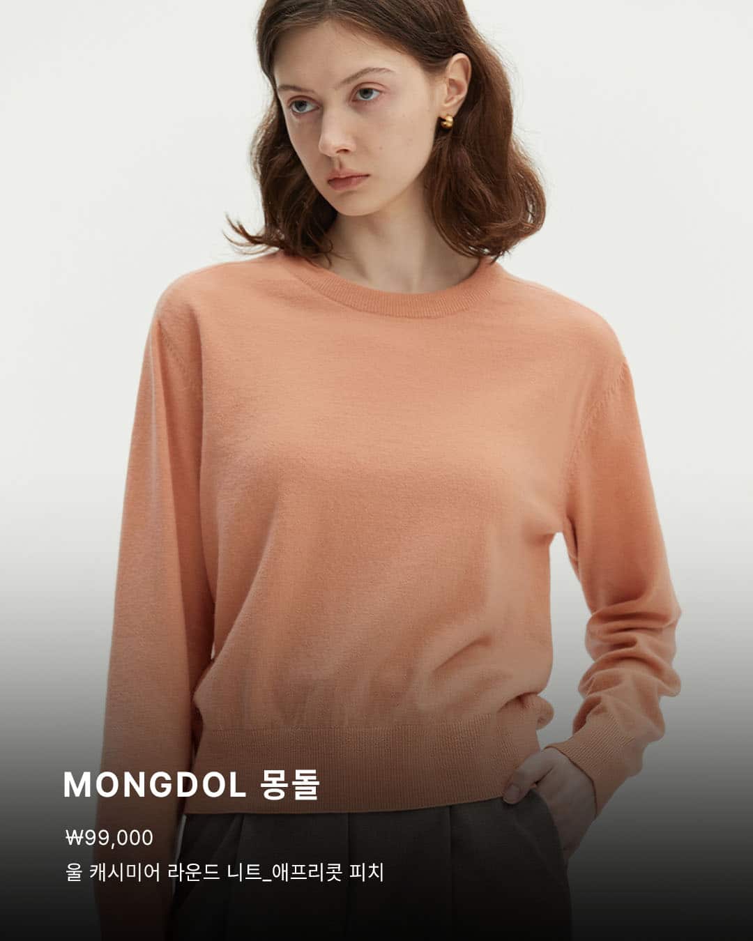 6️⃣ MONGDOL Wool Cashmere Round Knit_APRICOT PEACH ₩99,000