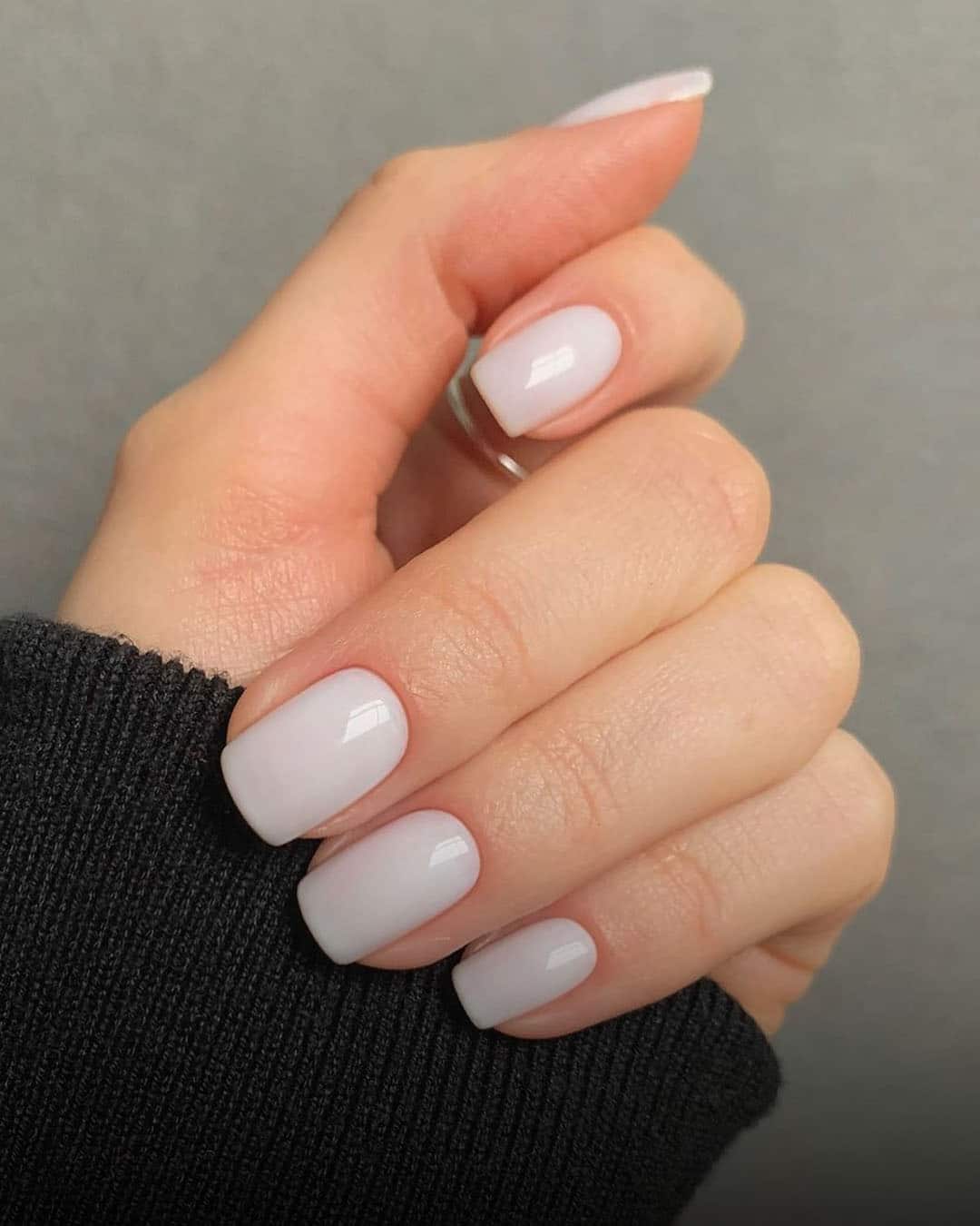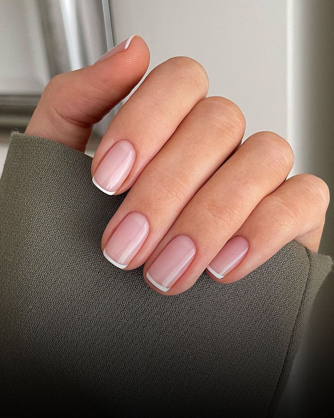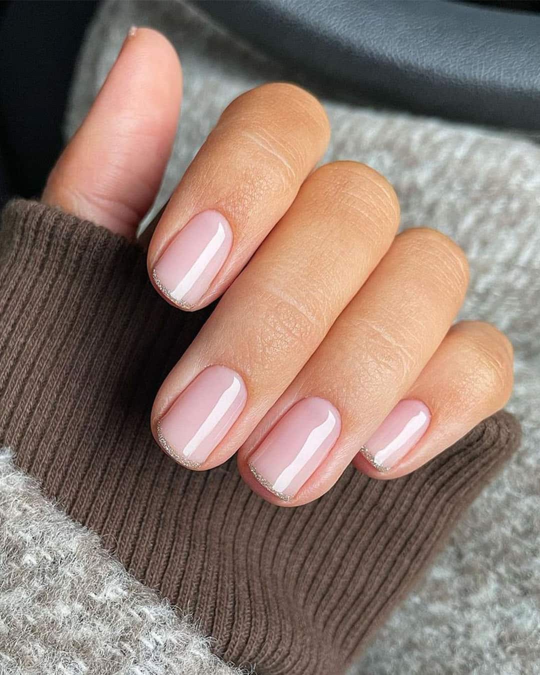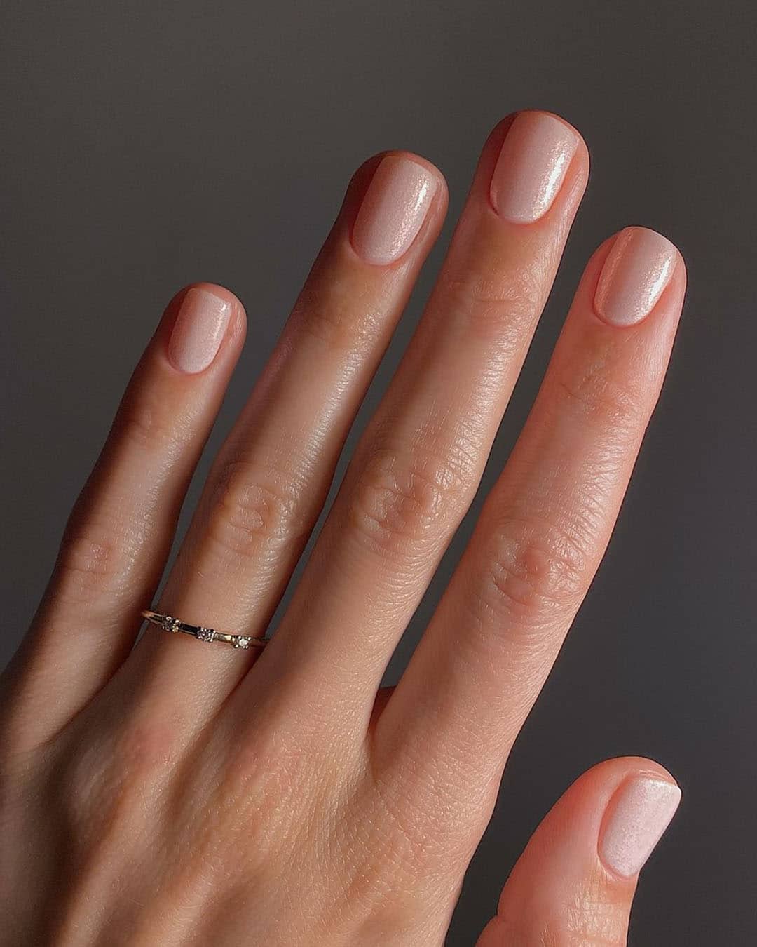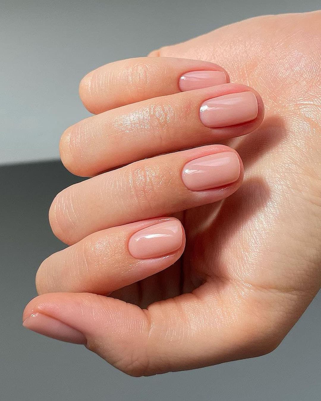 ▫️ Neatly groomed nails with a clear, nude-tone polish