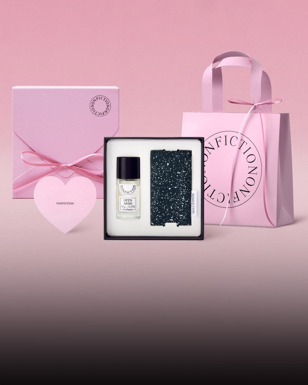 2️⃣ @official.nonfiction NONFICTION Eau de Parfum 10ML & Pouch ₩36,000 A perfume packaged in a seasonal limited edition pink ribbon package, along with a pouch, to make a more lovely gift. It’s conveniently portable with the perfect size for daily outings.