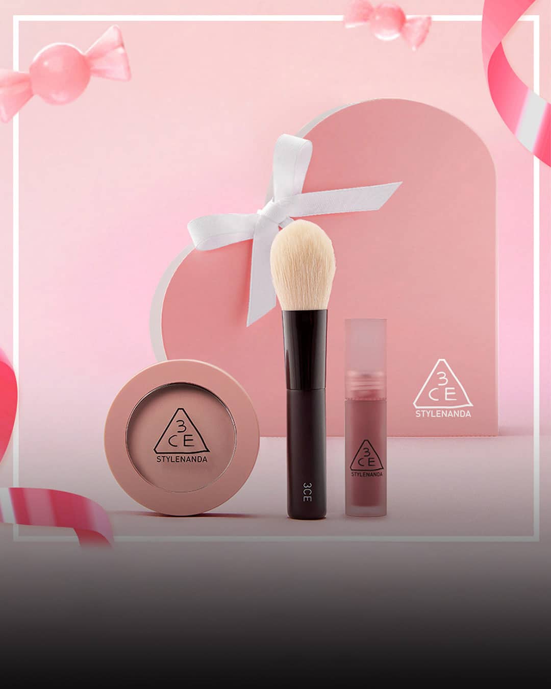 5️⃣ @3ce_official 3CE Face Blush Set ₩18,000 A gift set that includes a multi-use brush, mini blush tint, and blush set packaged in a heart gift bag. This composition is exclusively available on KakaoTalk Gifts.