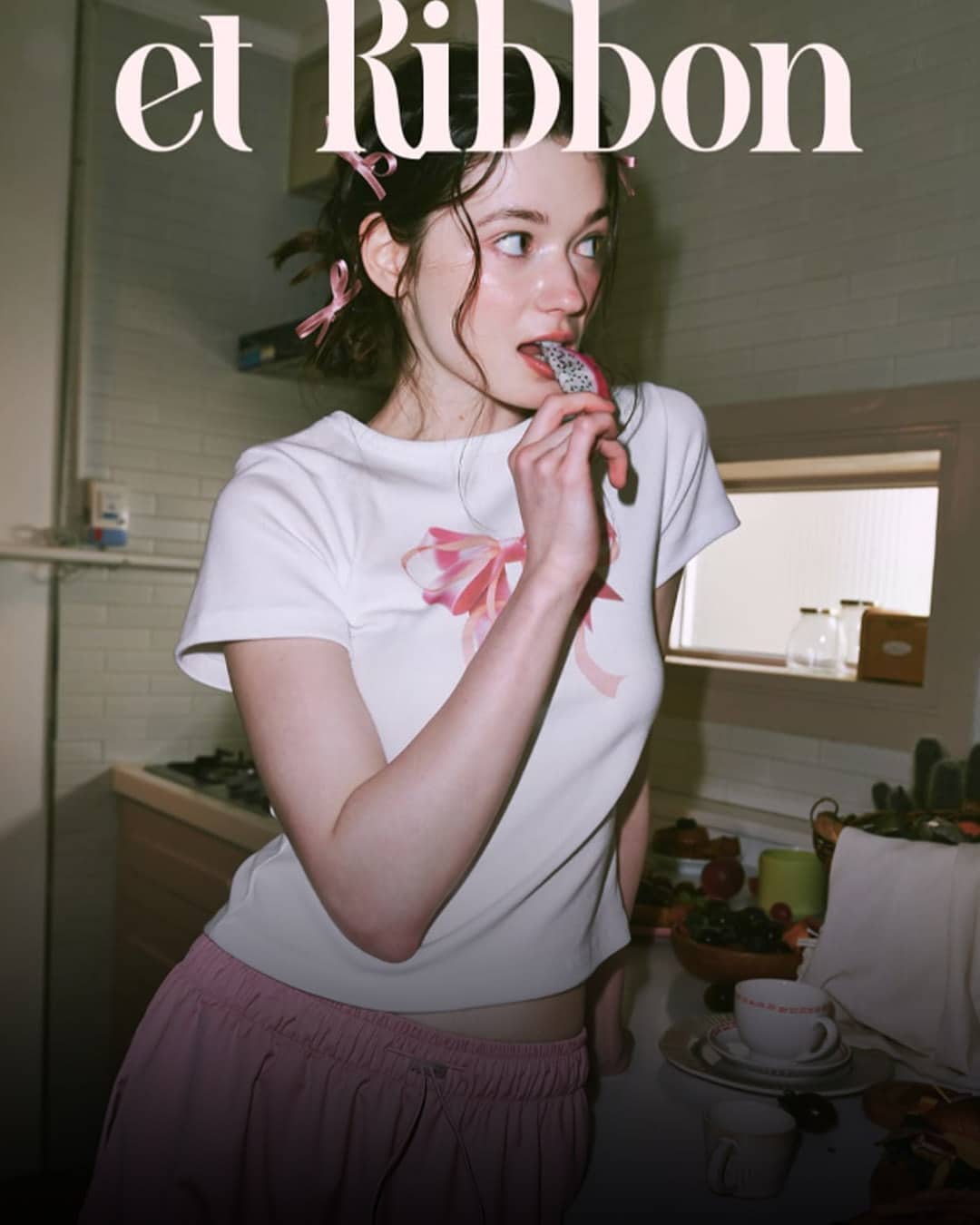 ▫️ @ronron.co.kr DOUBLE RIBBON SLIM CROP T SHIRT WHITE PINK ₩55,000