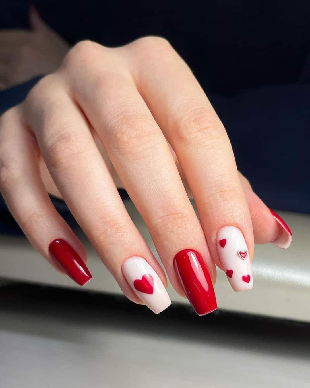 Add a spoonful of loveliness to your daily life with heart nails, which can be kitschy with thick three-dimensional heart parts and colorful art, or simple with heart points in one color.