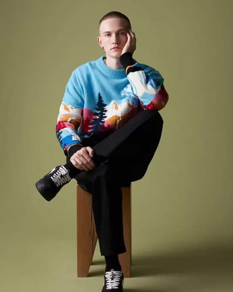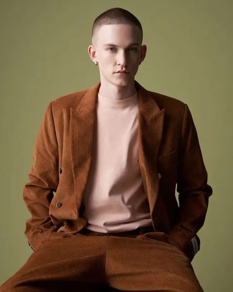 Thickly-knit cable sweaters and corduroy suits give a glimpse of the seasonal vibe. The collection exudes freshness with diverse colors applied throughout.