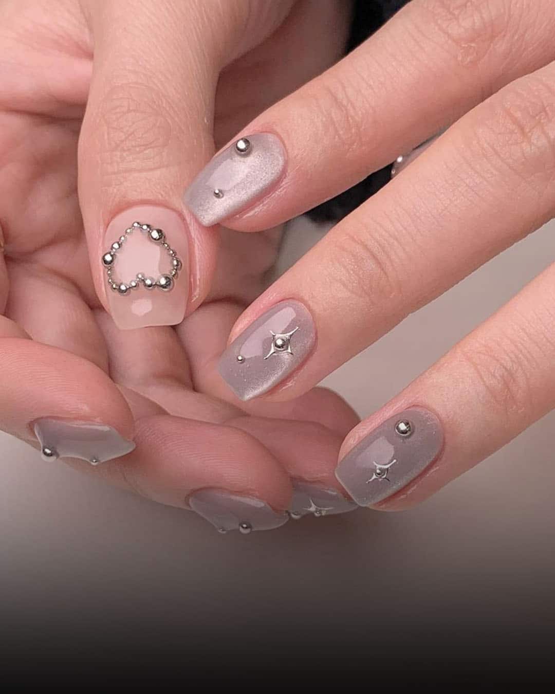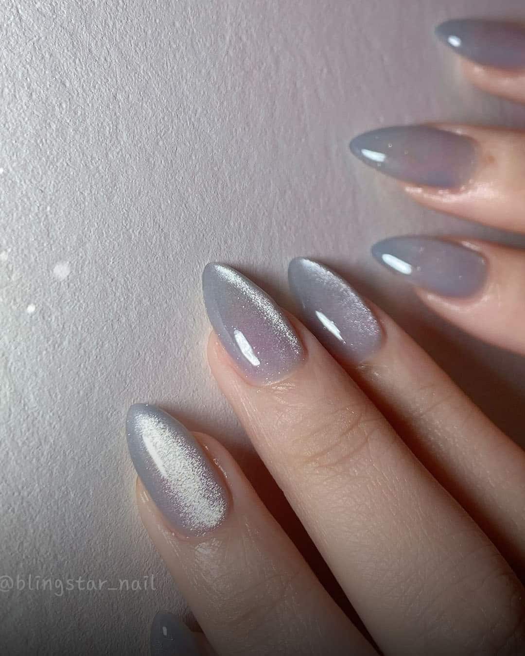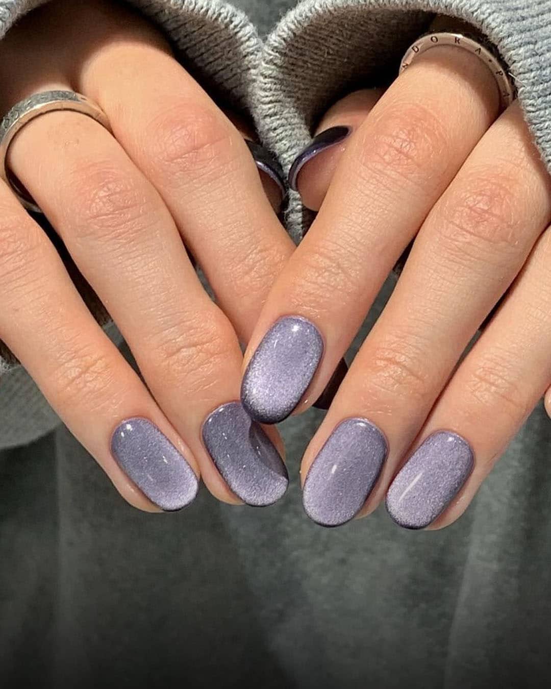 The magnetic nail trend, beloved since last year to this year for its brilliance shining from any angle. Its popularity continues due to its ability to create various shapes with just a single clip, without the need for special tools.