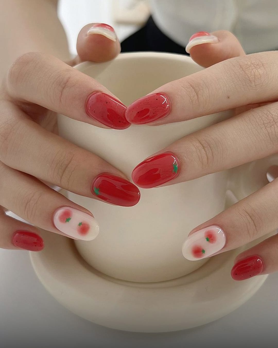 One of the must-have nail colors for the summer season is ‘red,’ which embodies the sizzling energy of the season. Red nails have a unique charm that can feel entirely different depending on how you style them. Add a toned-down red to daring stiletto-shaped nails for a sexy and passionate vibe, or incorporate patterns like hearts or ribbons for a sweet and charming look.