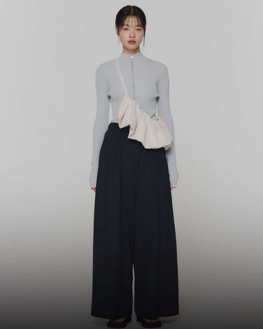 Amomento pursues timeless values and restrained beauty based on classicism, aiming for a beauty that remains unchanged over time. It focuses on the beautiful value that is completed when worn by someone, and strives to design even the moment the clothes are worn with luxurious materials, minimal silhouettes, and details.