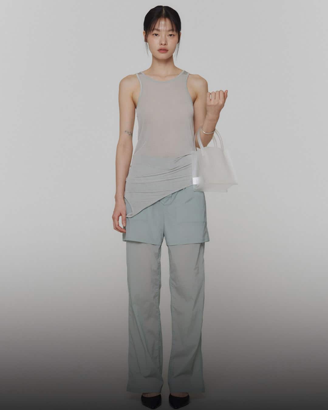 6️⃣ THREE STRAPS SLEEVELESS TOP / REVERSIBLE SHEER STRAIGHT FIT PANTS