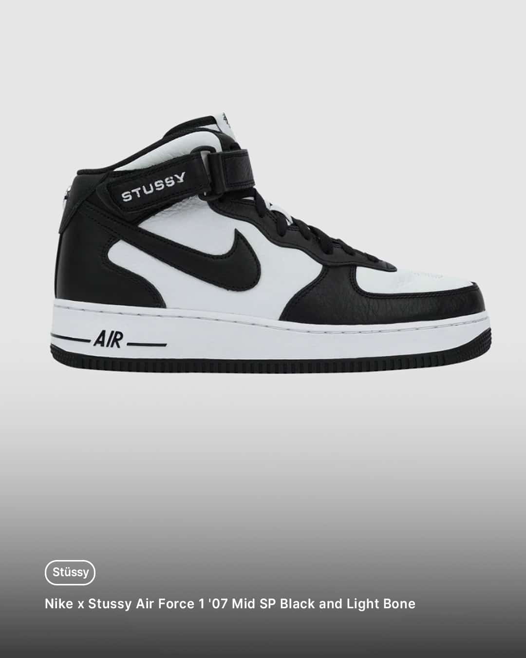 2️⃣ Nike x Stussy Air Force 1 ’07 Mid SP Black and Light Bone