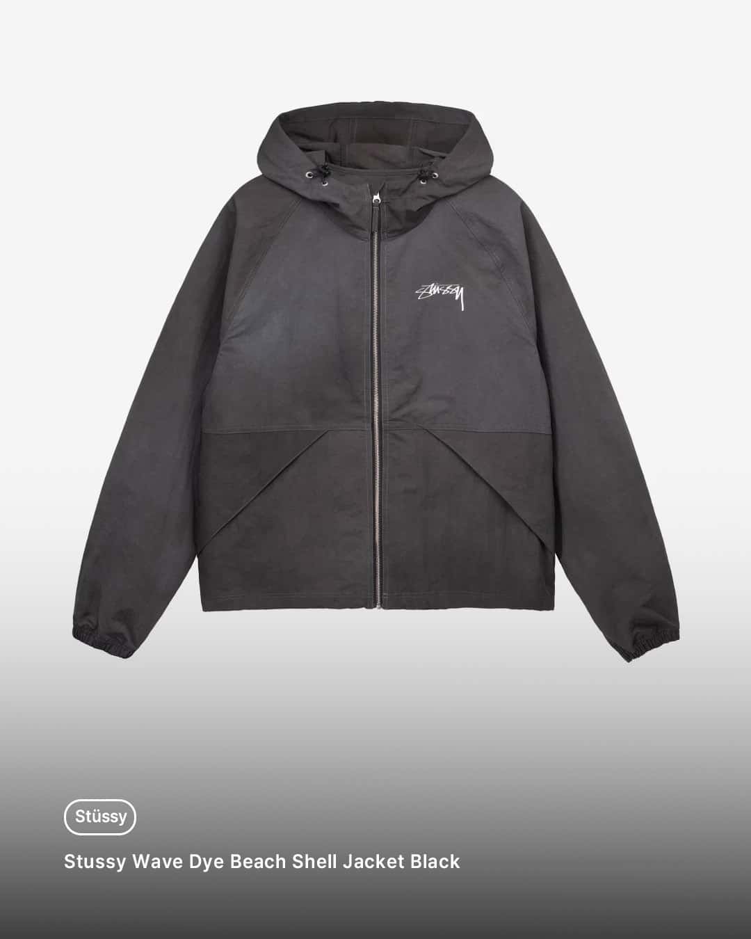 3️⃣ Stussy Wave Dye Beach Shell Jacket Black