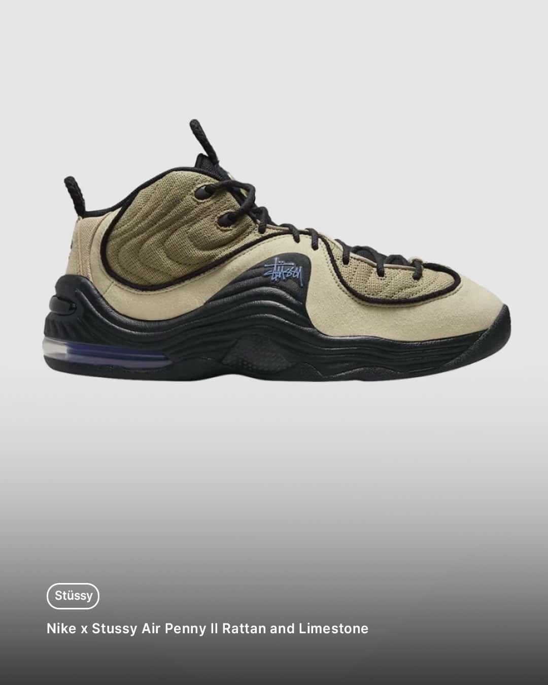 5️⃣ Nike x Stussy Air Penny II Rattan and Limestone