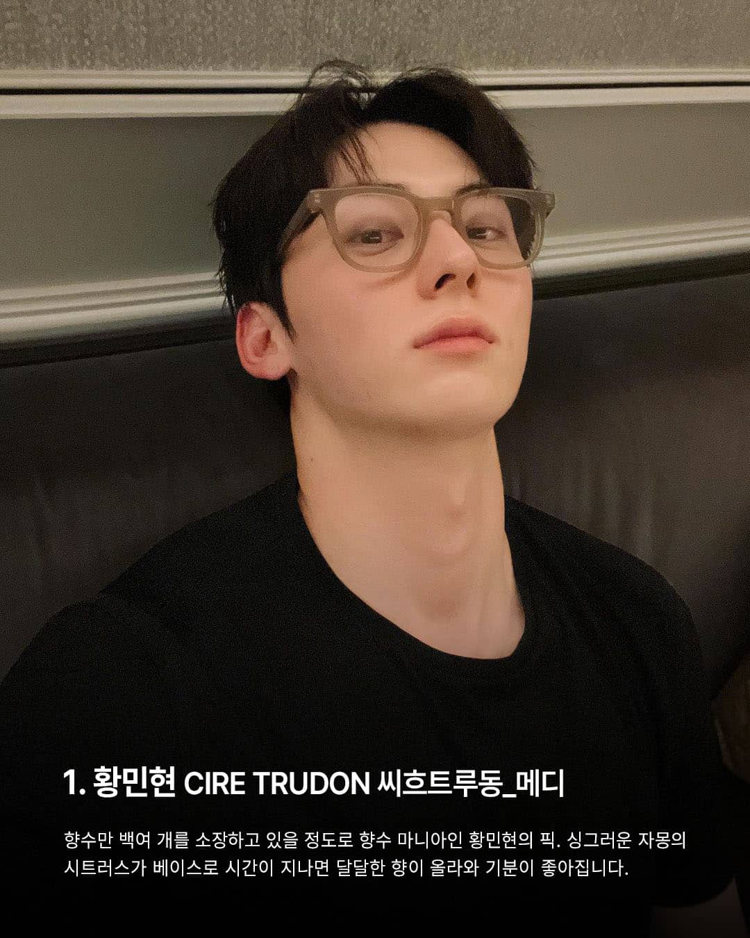 A perfume aficionado owning over a hundred bottles, Hwang Min-hyun’s choice features a refreshing grapefruit citrus base that evolves into a sweet aroma, uplifting your mood.