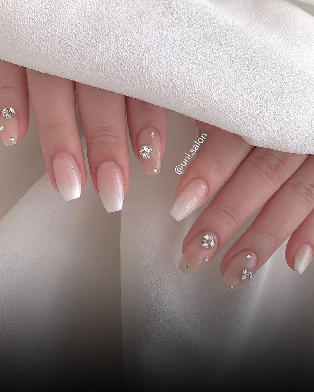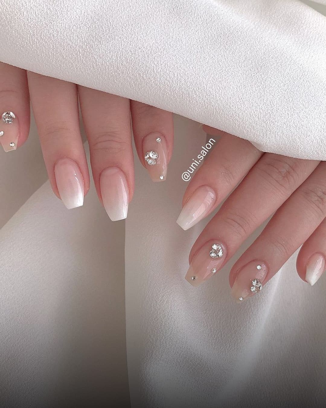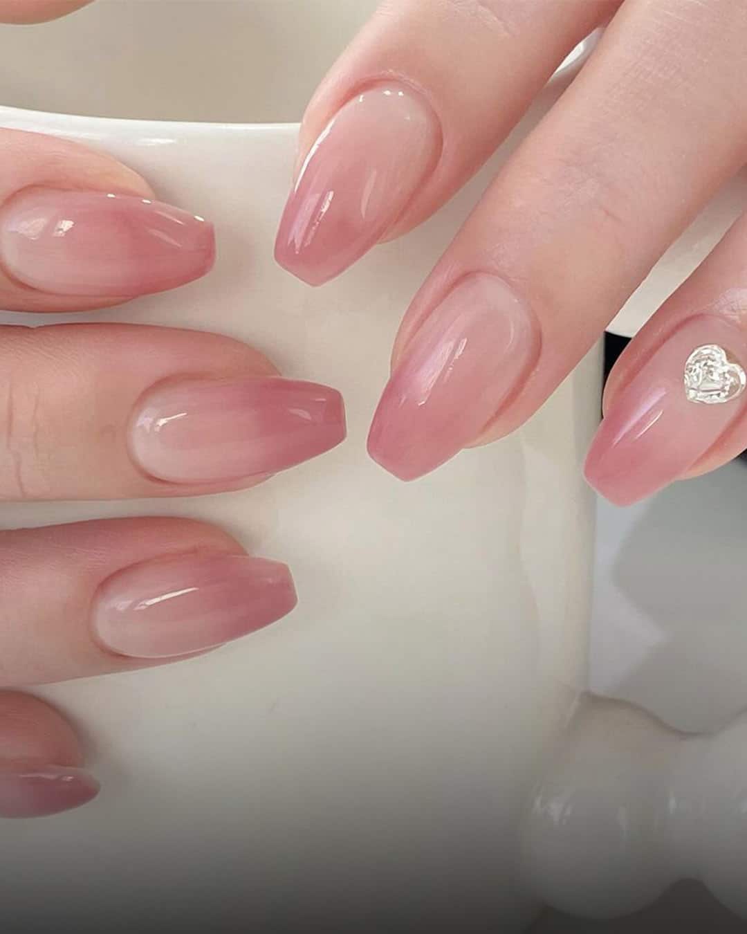 If you find it a bit dull, you can effectively cover it up by adding subtle glitter or stone decorations. From clean basic gradients to adding glitter, hearts, or ribbons for a luxurious and kitschy touch! Here’s a collection of nail designs based on gradients.