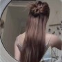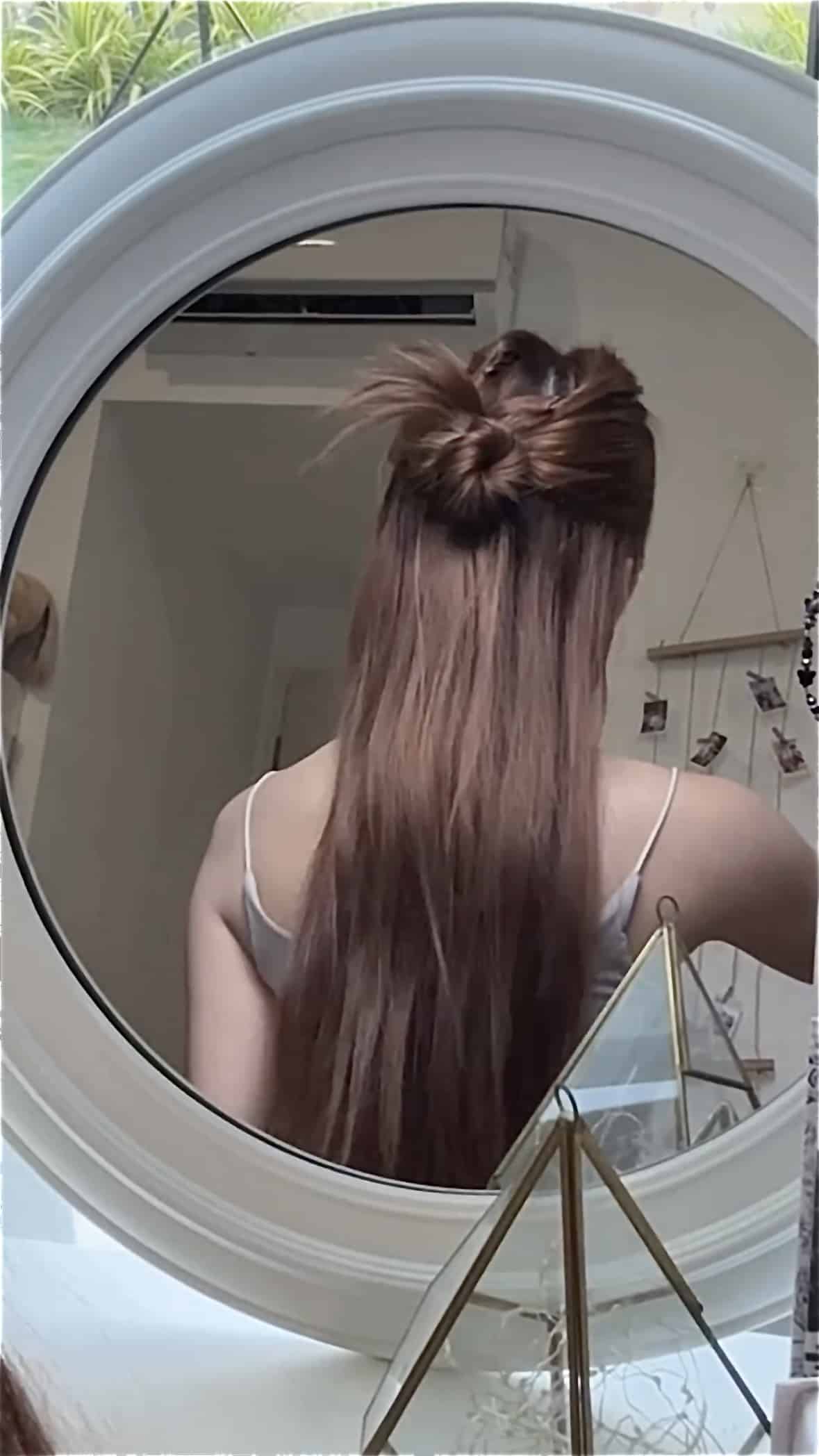 A thorn-studded half-up bun that perfectly encapsulates the Y2K mood! When it comes to the quintessential reference for this hairstyle, think of Jennie’s half-up bun, which features a distinct twist from the regular half-up styles: voluminous top and sharply protruding thorns 💡