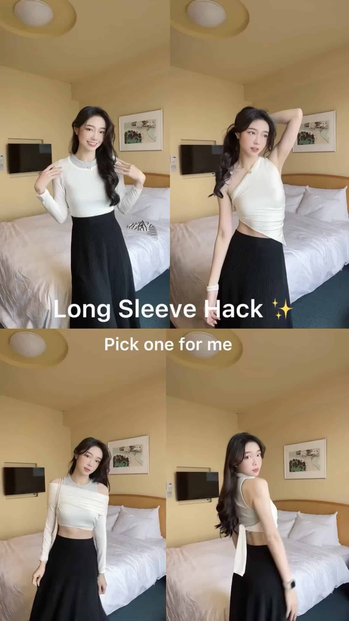 Discover how to style one long sleeve in various ways, from a one-shoulder top to an off-shoulder, and even a halter neck crop top!