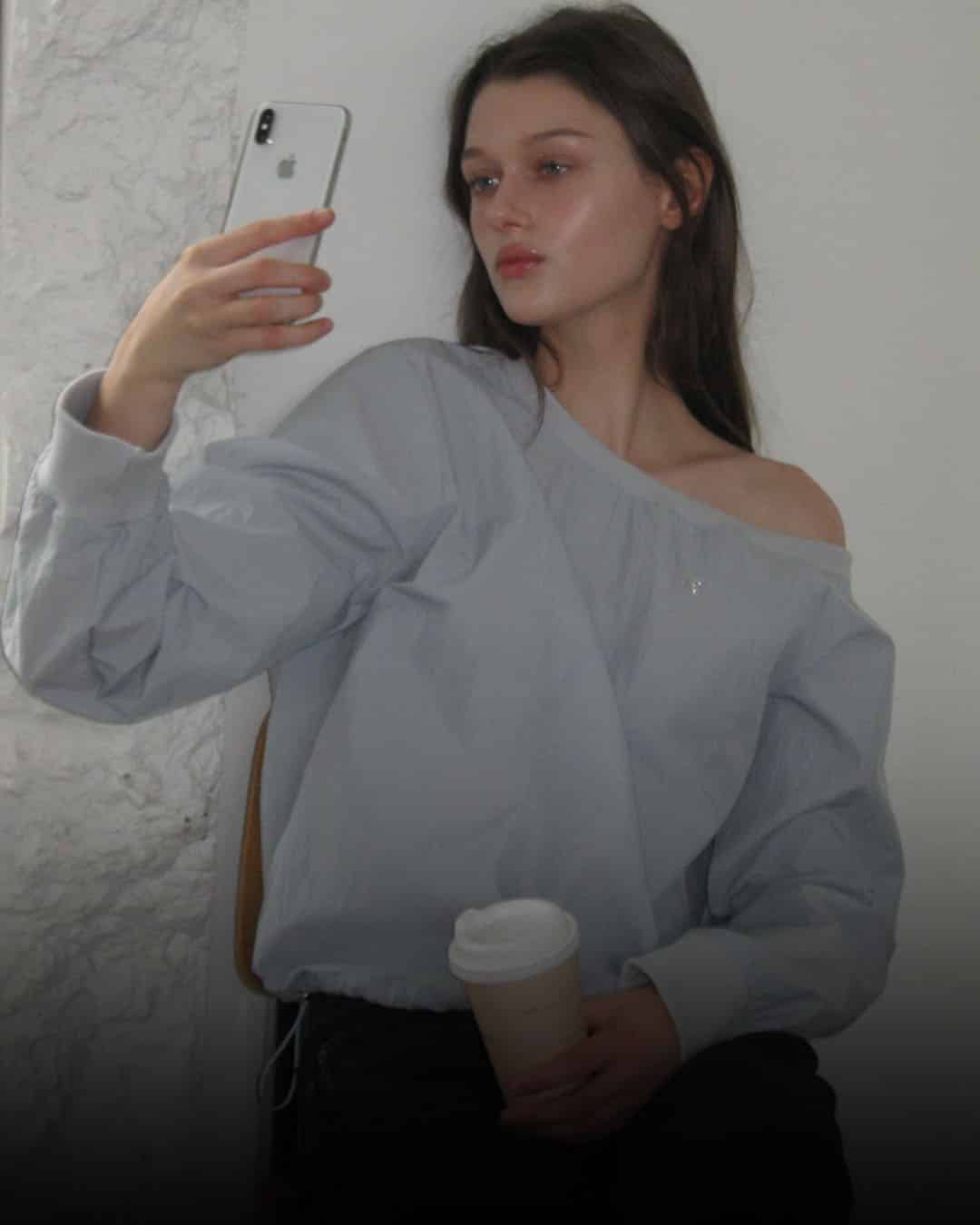 ▫️ @letterfrommoon_official Ciel Off-Shoulder Nylon Sweatshirt (3 colors) – KRW 69,000