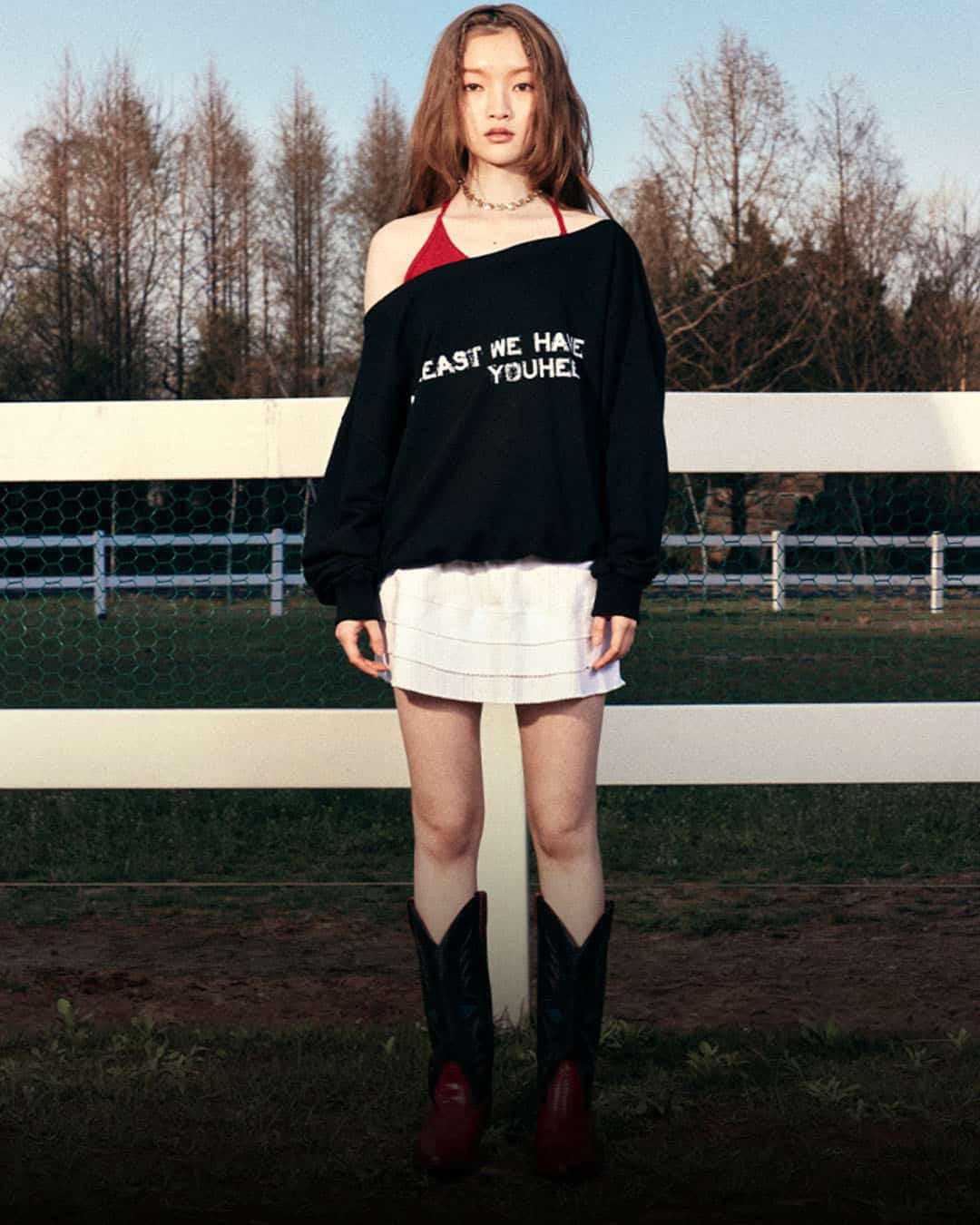 ▫️ @youhee.official Off-Shoulder Sweatshirts Black – KRW 75,000