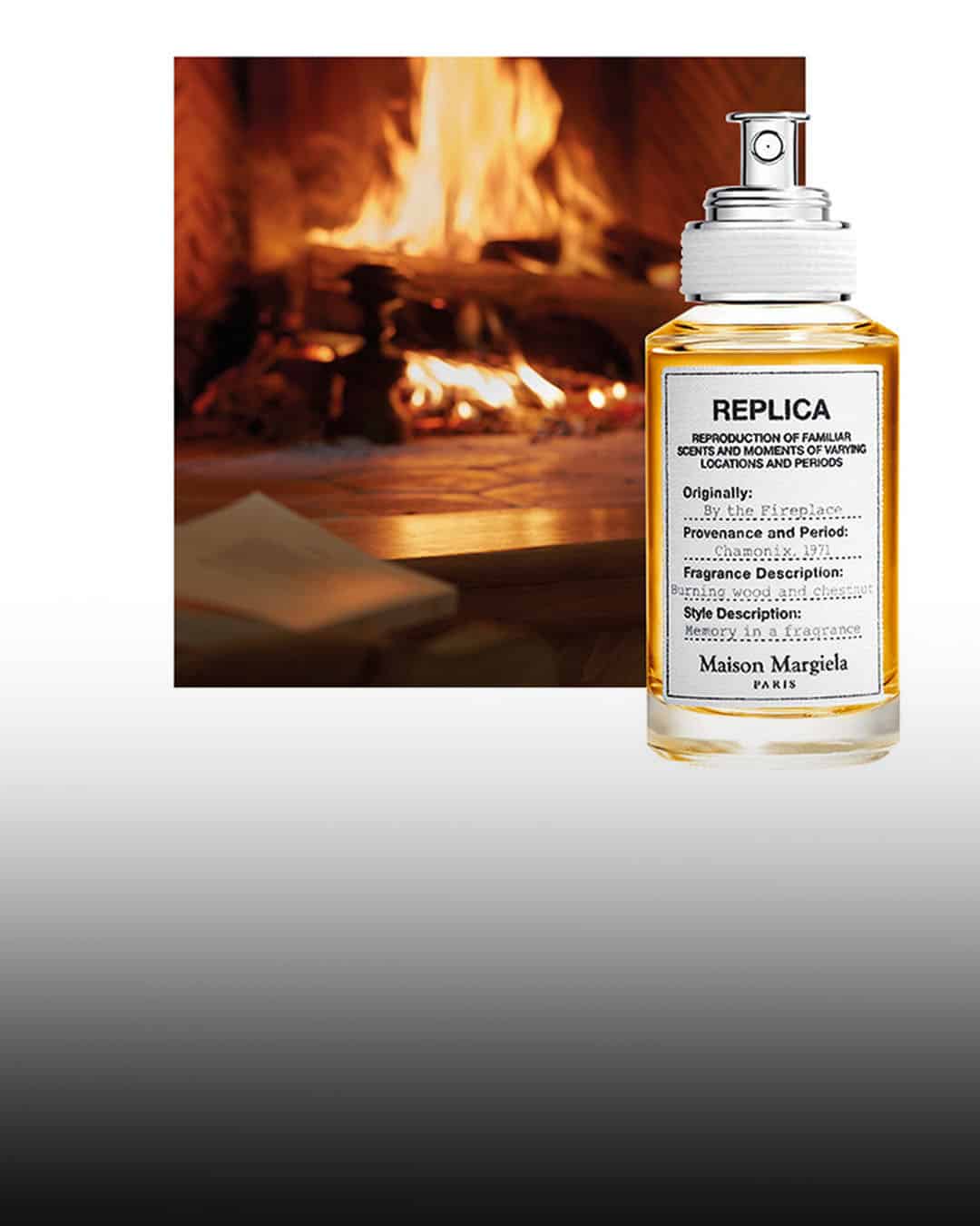 A warm, cozy fragrance evoking the smoky, woody scent of a crackling fireplace with hints of roasted chestnuts.