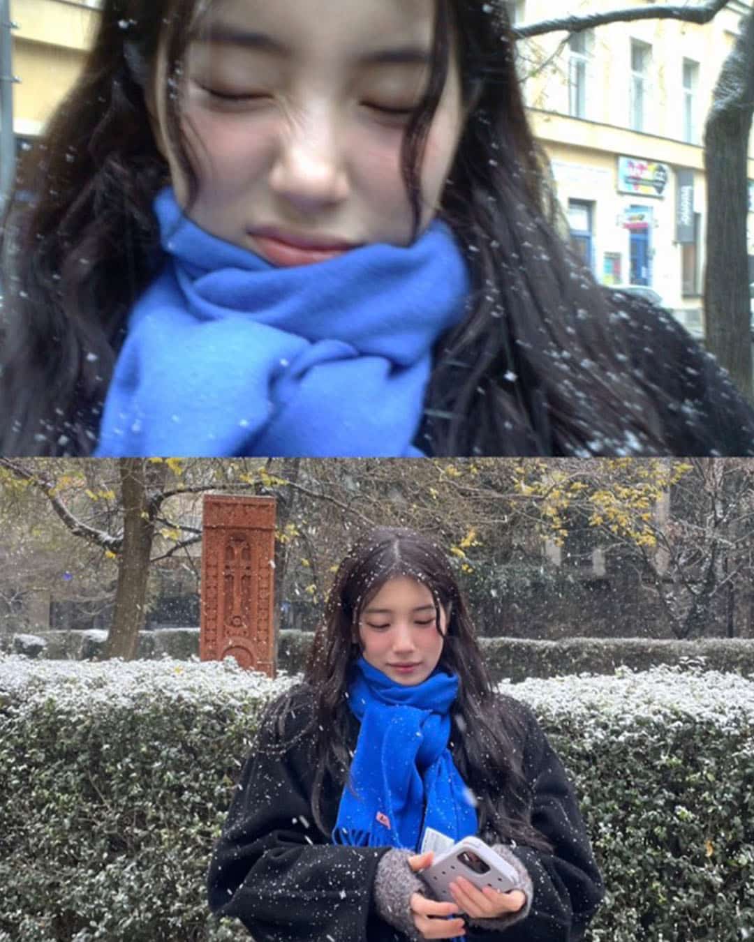 Suzy recently shared her Prague travel photos on social media, showcasing her charming visuals as the nation’s sweetheart. Among them, her diverse styling with various scarves caught the eye, demonstrating her genuine love for scarves, including a unique style of wearing two scarves at once. 🧣