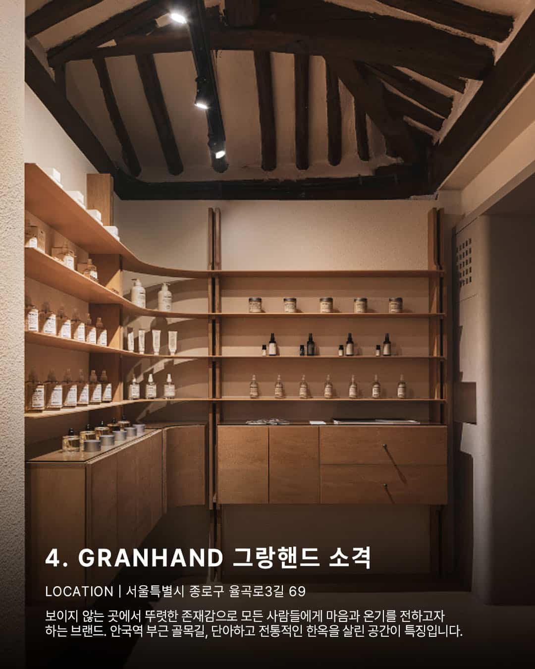 A brand intending to convey warmth and heart with a distinct presence in unseen places. Located near Anguk Station, it features a space preserving the elegance of traditional Korean houses.