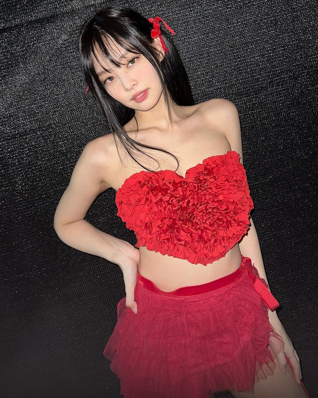 From striking red lips to hair accessories, bandanas, dresses, leg warmers, and scarves! Check out Jennie’s unforgettable “red moments” and see how she embraces the color that suits her perfectly.