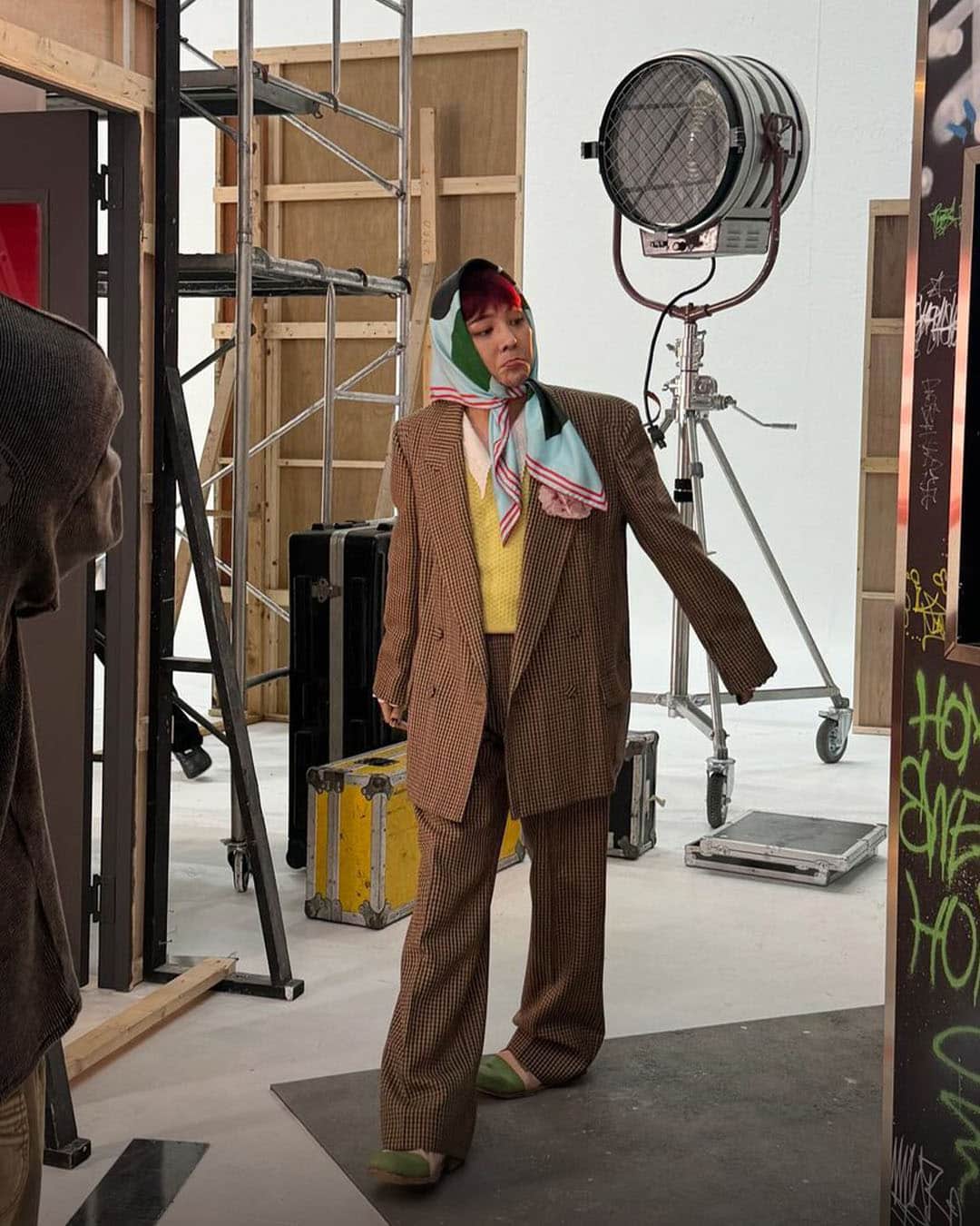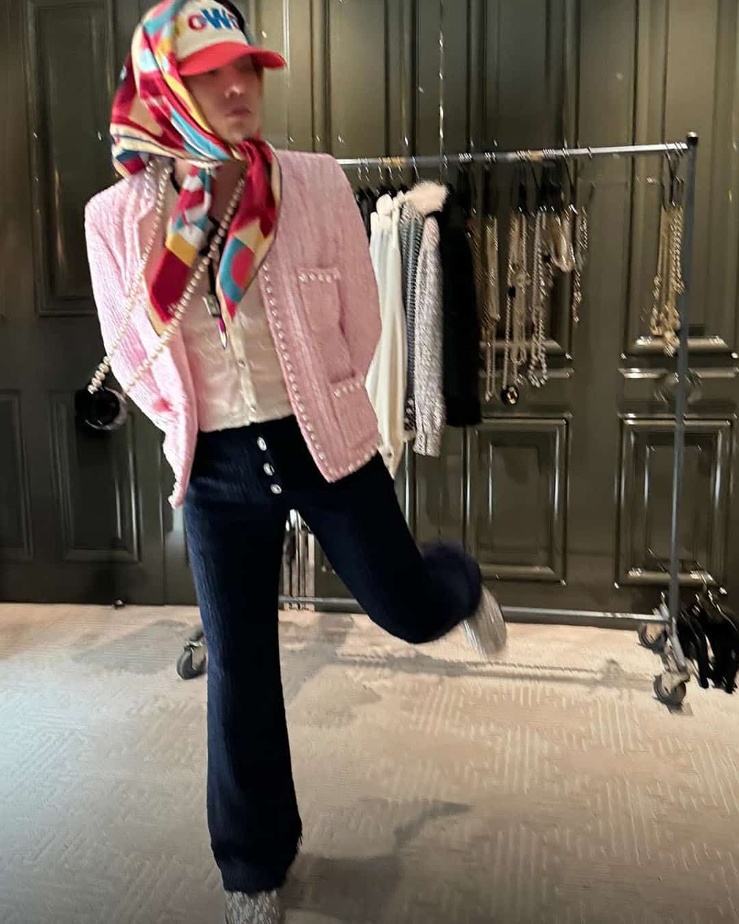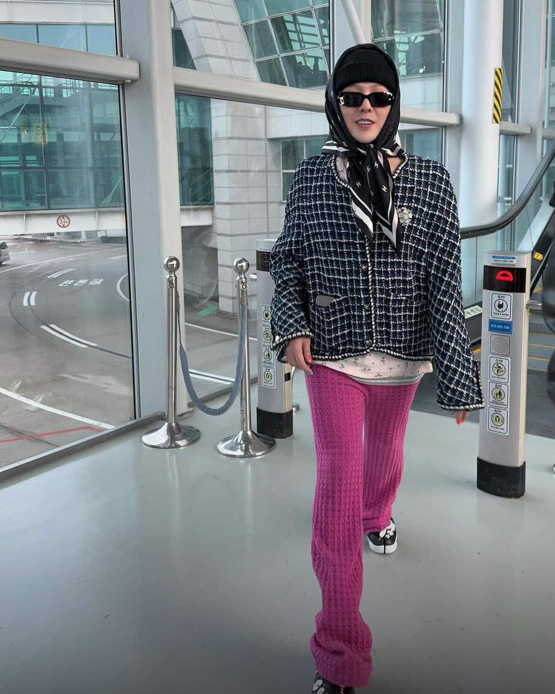 If you’ve been keeping an eye on his recent appearances, you may have spotted his go-to accessory: the scarf. Whether paired with a suit, a tweed jacket, or a casual everyday outfit, G-Dragon has redefined the scarf by styling it on his head, often layered with caps or hats for that signature edgy touch.